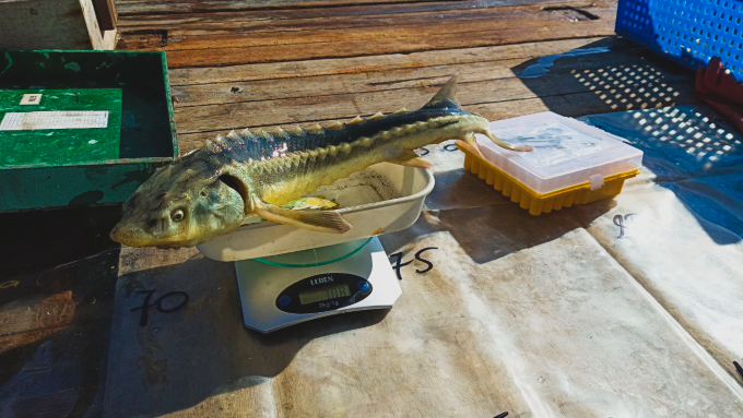 «Особое внимание уделяется учёту численности и распределения осетровых видов рыб, пиленгаса, камбалы-калкан, а также промысловых моллюсков, популяции которых в последние годы демонстрируют устойчивую тенденцию к увеличению запасов», - отмечает начальник экспедиции, главный специалист лаборатории проходных и полупроходных рыб Ольга Гуськова.