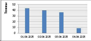 1 и 3 сентября у черноморских берегов Крыма и Краснодарского края, а также в Азовском море преобладали слабые ветры переменных направлений, 2 сентября – юго-западный ветер скоростью 3-8 м/с. С 4 по 9 сентября в указанных районах наблюдался северо-восточный ветер скоростью 5-10 м/с. 10 сентября в Азовском море и у берегов Крыма преобладал северо-восточный ветер скоростью 7-12 м/с, у побережья Краснодарского края – западный ветер скоростью 3-8 м/с. С 11 по 15 сентября северо-восточный ветер скоростью 7-12 м/с наблюдался на всей рассматриваемой акватории. 16-17 сентября скорость северо-восточного ветра уменьшилась до 4-9 м/с. 18 сентября в Азовском море и у берегов Крыма преобладали западный и северо-западный ветры скоростью 5-10 м/с, у побережья Краснодарского края – слабые ветры переменных направлений. 19 и 20 сентября северо-западный ветер преобладал уже на всей рассматриваемой акватории. 21 сентября ветер поменялся на северо-восточный скоростью 3-8 м/с. С 1 по 4 сентября средняя суточная температура воздуха в рассматриваемых регионах находилась в пределах 23-26 °С, температура поверхностных морских вод на черноморском шельфе Крыма и в Азовском море в эти дни составляла 23-25 °С, у черноморского побережья Краснодарского края – 23-27 °С. С 5 по 8 сентября эти показатели наблюдались, соответственно, в пределах: 22-25 °С, 23-24 °С и 23-27°С; с 9 по 18 сентября – 20-23 °С, 21-23 °С и 23-26 °С; с 19 по 21 сентября, соответственно, – 19-21 °С, 19-21 °С и 22-24 °С. В период с 1 по 21 сентября промысел шпрота одно среднетоннажное судно вело с 1 по 4 сентября на участке шельфа от пос. Н. Свет до м. Меганом с суточными уловами, представленными на рисунке 1. Общий вылов шпрота у берегов Крыма за указанный период составил 128 т. У побережья Краснодарского края на участке шельфа от Геленджика до м. Идокопас одно малотоннажное судно работало на промысле шпрота 1-5 сентября, 9-11 сентября и 17 сентября с суточными уловами, представленными на рисунке 2. Общий вылов шпрота в этом районе в период с 1 по 21 сентября составил 84 т. В Азовском море в районе Бердянской косы 1-4 сентября и 20-21 сентября работали одно-два малотоннажных судна с суточным выловом от 0,7 т до 5,4 т (в среднем – 2,7 т) рапаны на одно судно (Рисунок 3). Общий вылов рапаны за период с 1 по 21 сентября составил 25 т.Прогноз промысла