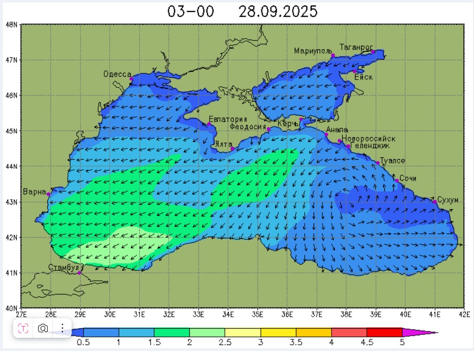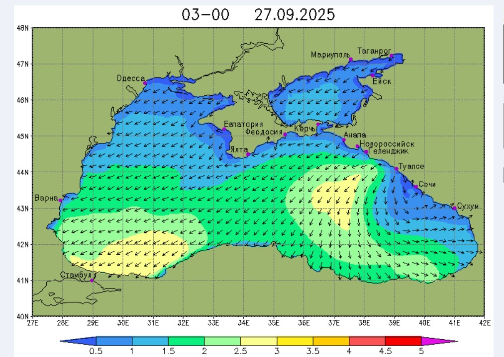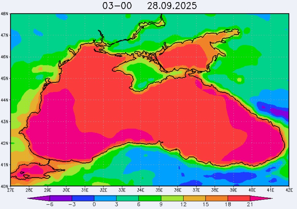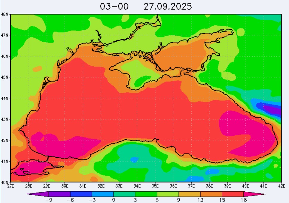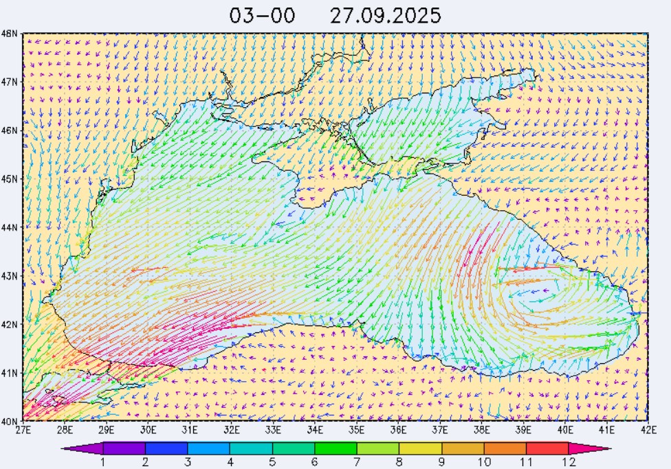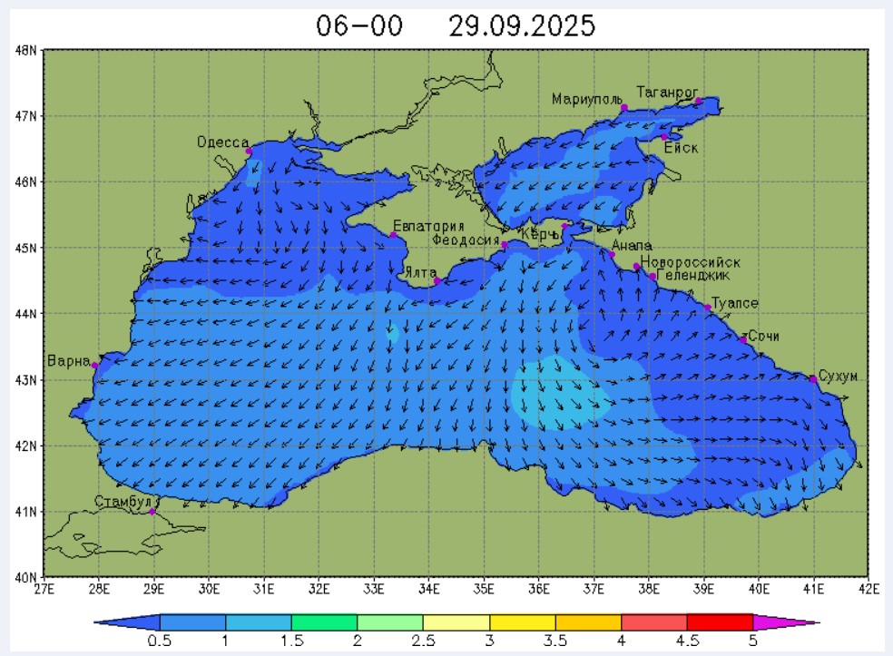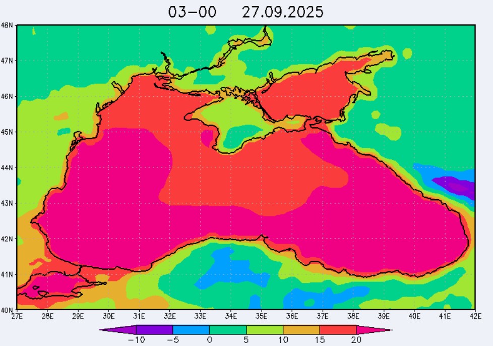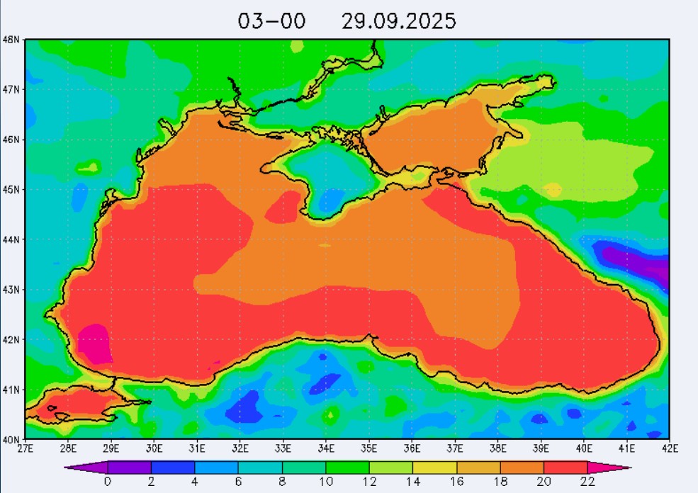 С 26 по 29 сентября у черноморских берегов Крыма и Краснодарского края, а также в Азовском море будет преобладать северо-восточный ветер. Скорость ветра будет уменьшаться от 10-15 м/с 26 сентября до 5-10 м/с 29 сентября. Средняя суточная температура воздуха в этих районах моря 26-29 сентября ожидается в пределах 15-18 °С. Температура поверхностных вод на черноморском шельфе Крыма в эти дни составит 19-22 °С, в Азовском море – 20-21 °С, у побережья Краснодарского края – 22-23 °С. С 27 по 30 сентября наиболее благоприятные для промысла шпрота океанографические условия будут формироваться у черноморских берегов Крыма на участках шельфа в районе Евпатории и в районе Феодосии.Ветер