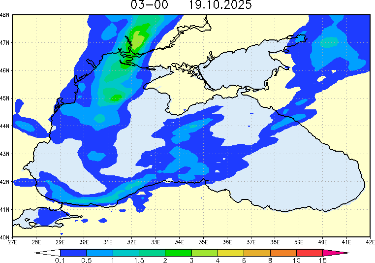 15 октября в южной части Азовского моря наблюдались западный и северо-западный ветры скоростью 3-6 м/с, 16 октября – северо-западный ветер скоростью 4-8 м/с. Средняя суточная температура воздуха в южной половине Азовского моря уменьшалась от 12-14 °С 15 октября до 10-12°С 16 октября. Температура поверхностных морских вод в этой части Азовского моря в эти дни составляла 15-16 °С. Промысел азовской хамсы 15-16 октября велся в предпроливной зоне Азовского моря тремя малотоннажными судами на прибрежных участках акватории от Керченского пролива до пос. Кучугуры с суточным выловом от 1,0 т до 2,7 т (в среднем – 1,8 т) азовской хамсы на одно судно. Общий вылов хамсы за 15-16 октября составил 10,9 т.Прогноз промысла