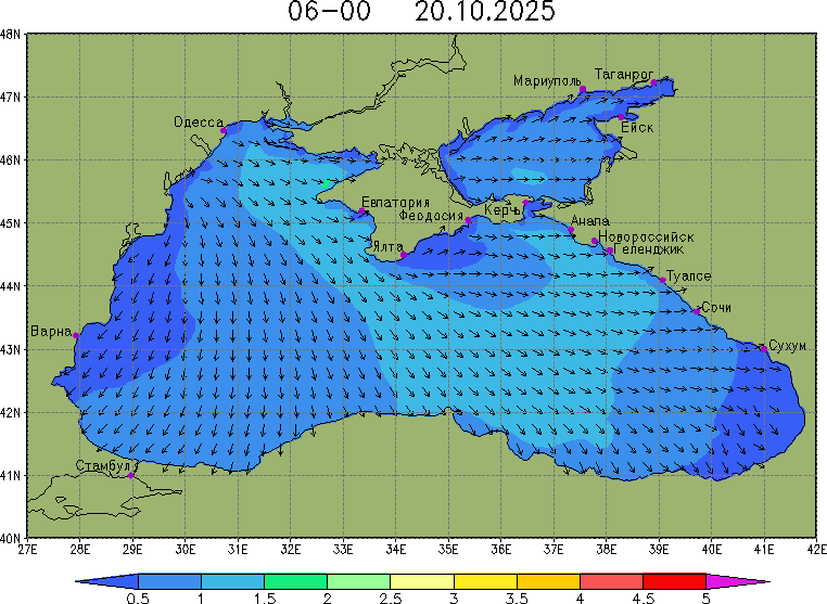 17 и 19 октября в южной половине Азовского моря будут преобладать слабые ветры переменных направлений, 18 октября – северо-восточный ветер скоростью 4-7 м/с, 20 октября – западный ветер скоростью 5-10 м/с. Средняя суточная температура воздуха в указанном районе в период с 17 по 20 октября будет находиться в пределах 11-14 °С, температура поверхностных морских вод составит – 14-15 °С. 18-21 октября промысел азовской хамсы будет продолжаться на неустойчивых мигрирующих скоплениях в предпроливной зоне Азовского моряВетер