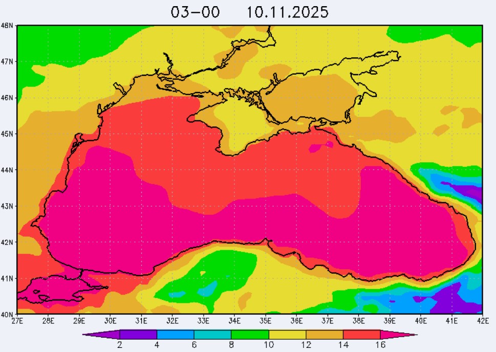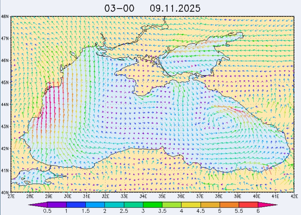 7 и 8 ноября в районе Керченского пролива будет преобладать северо-восточный ветер скоростью 5-10 м/с, 9 и 10 ноября – слабые ветры переменных направлений. Средняя суточная температура воздуха в этом район 7-10 ноября будет находиться в пределах 13-16 °С. Температура поверхностных морских вод в эти дни в азовской предпроливной зоне составит 13-14 °С, в черноморском предпроливье – 15-16 °С. 8-11 ноября промысел азовской хамсы будет продолжаться на неустойчивых мигрирующих скоплениях в керченских предпроливных зонах Азовского и Черного морей.Ветер
