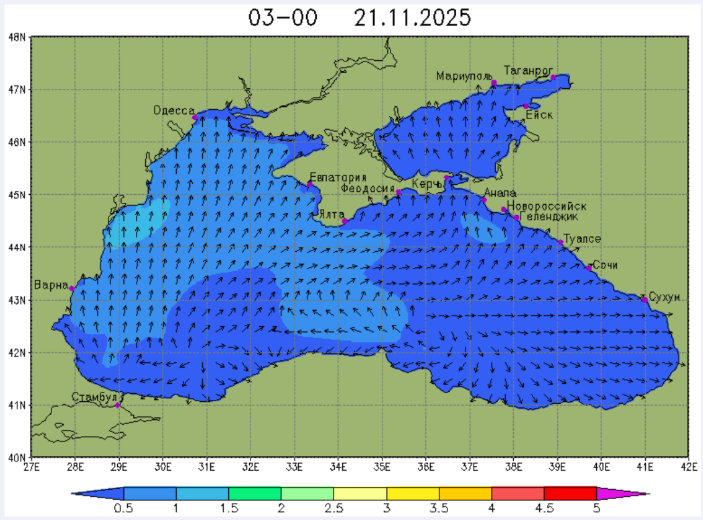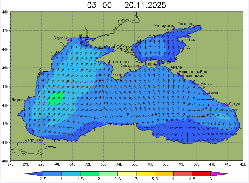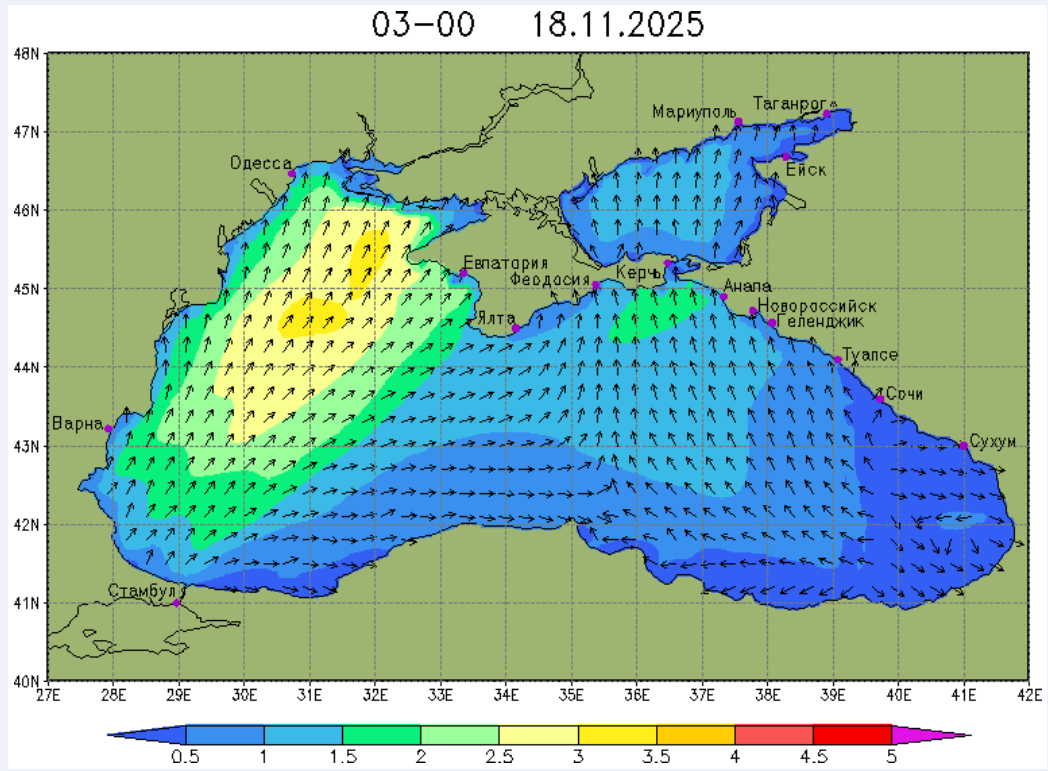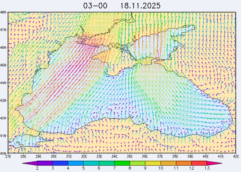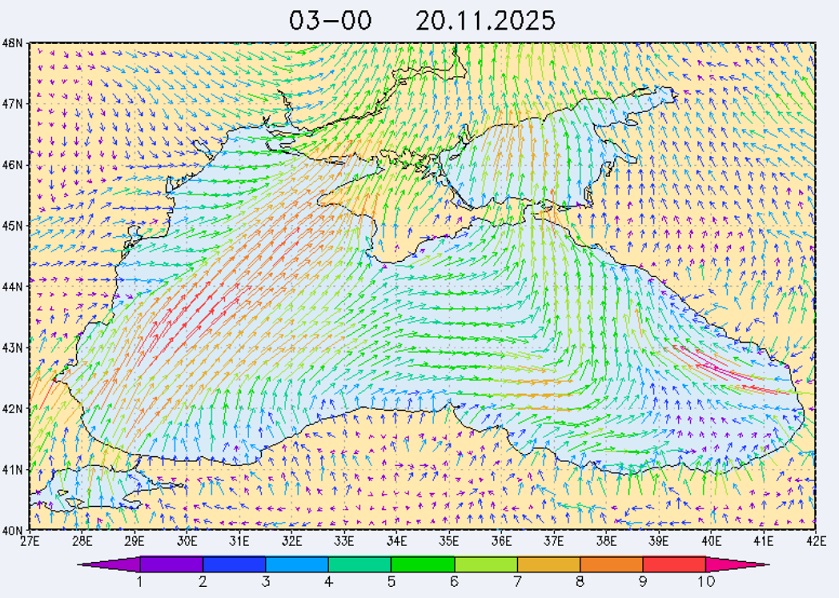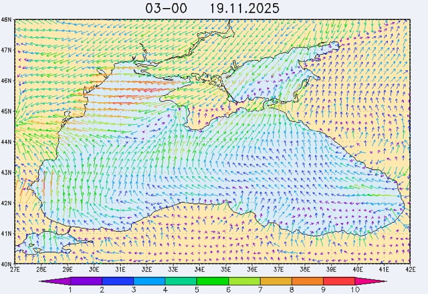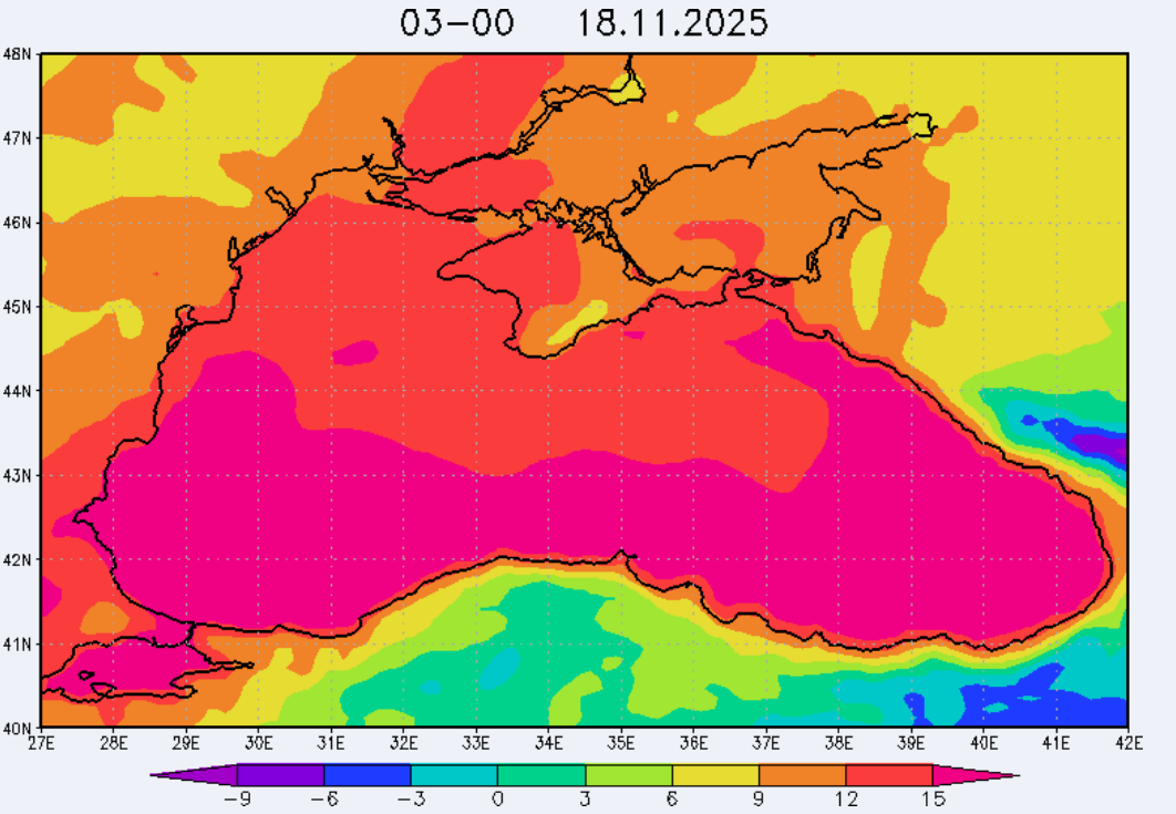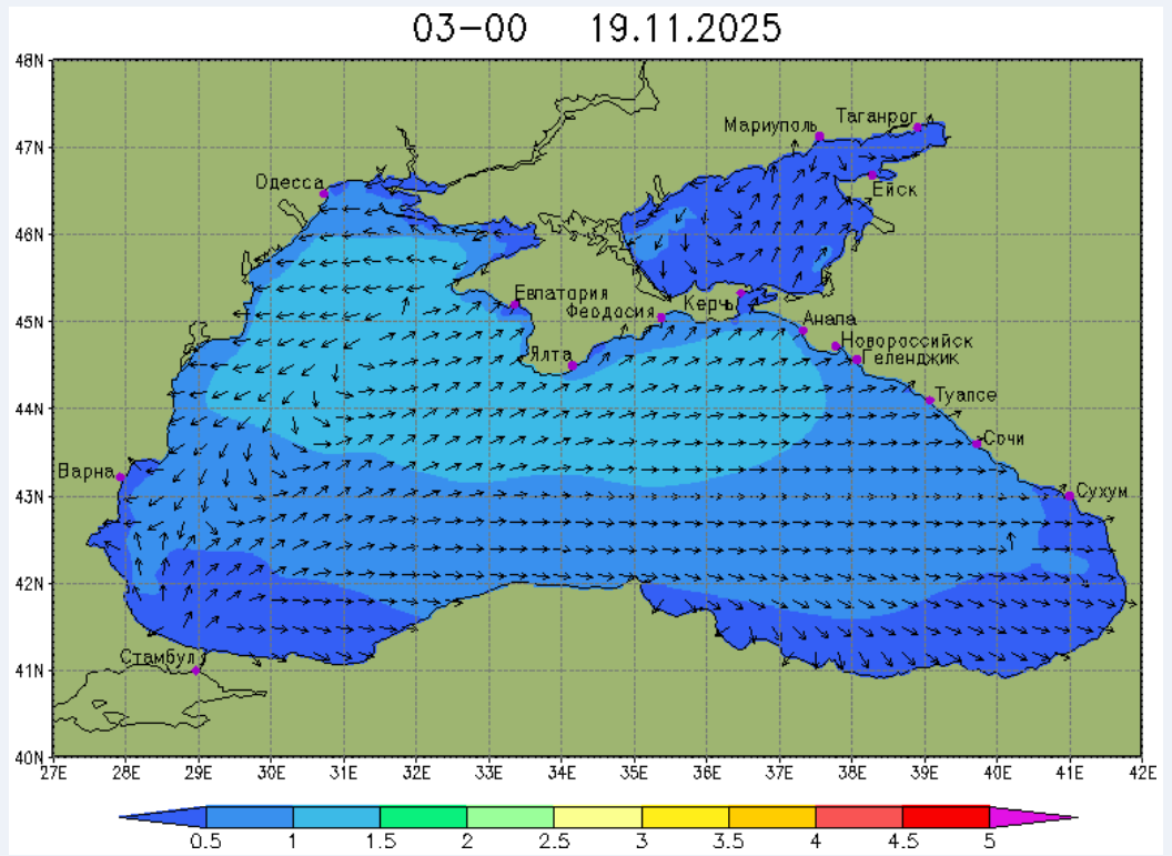 18-20 ноября в северо-восточной части Черного моря будут преобладать южный и юго-восточный ветры скоростью 7-12 м/с 18 ноября и 3-8 м/с 19 и 20 ноября. Средняя суточная температура воздуха в этом районе будет находиться в пределах 14-15 °С. Температура поверхностных морских вод в эти дни в прибрежных акваториях северо-восточной части Черного моря составит 14-16 °С. С 19 по 21 ноября основной промысел хамсы будет продолжаться на неустойчивых мигрирующих скоплениях в северо-восточной части Черного моря на участках шельфа от Ялты до Анапы.Ветер