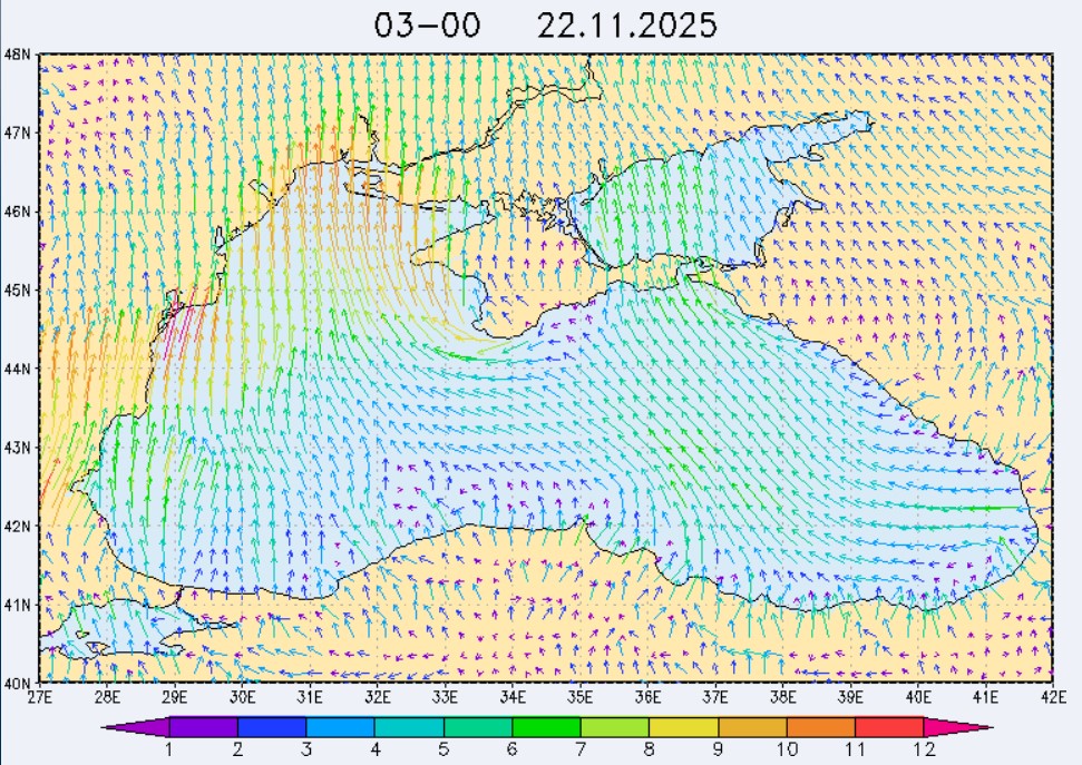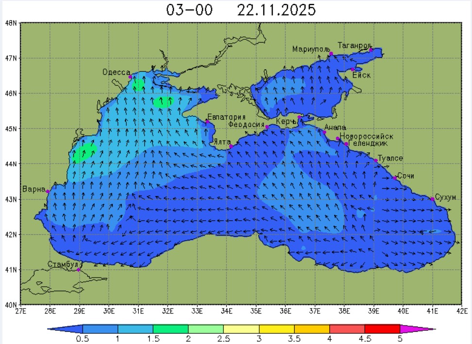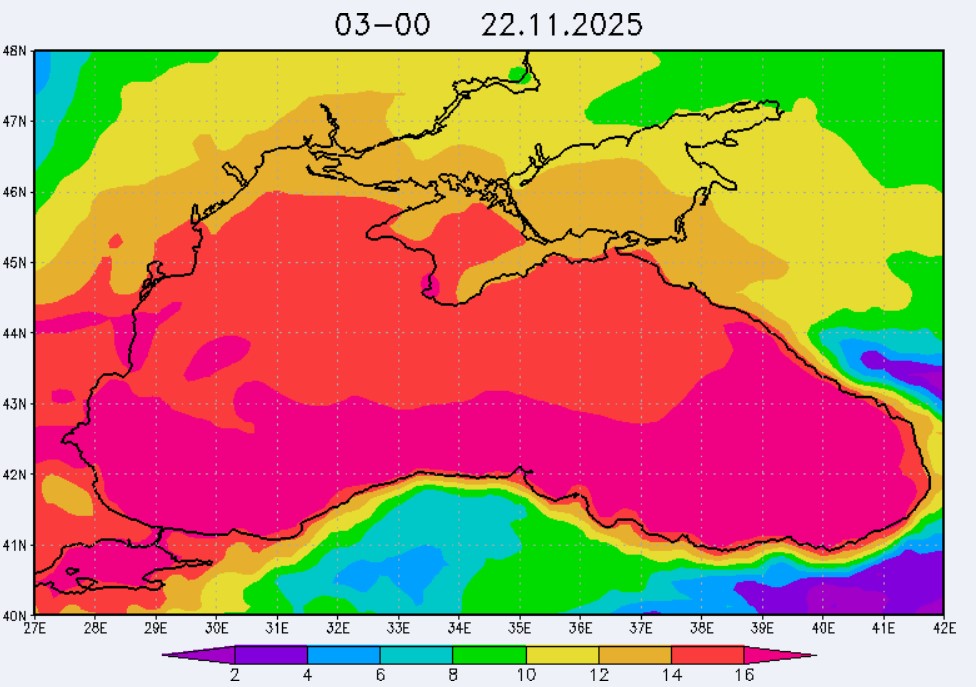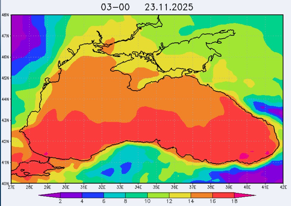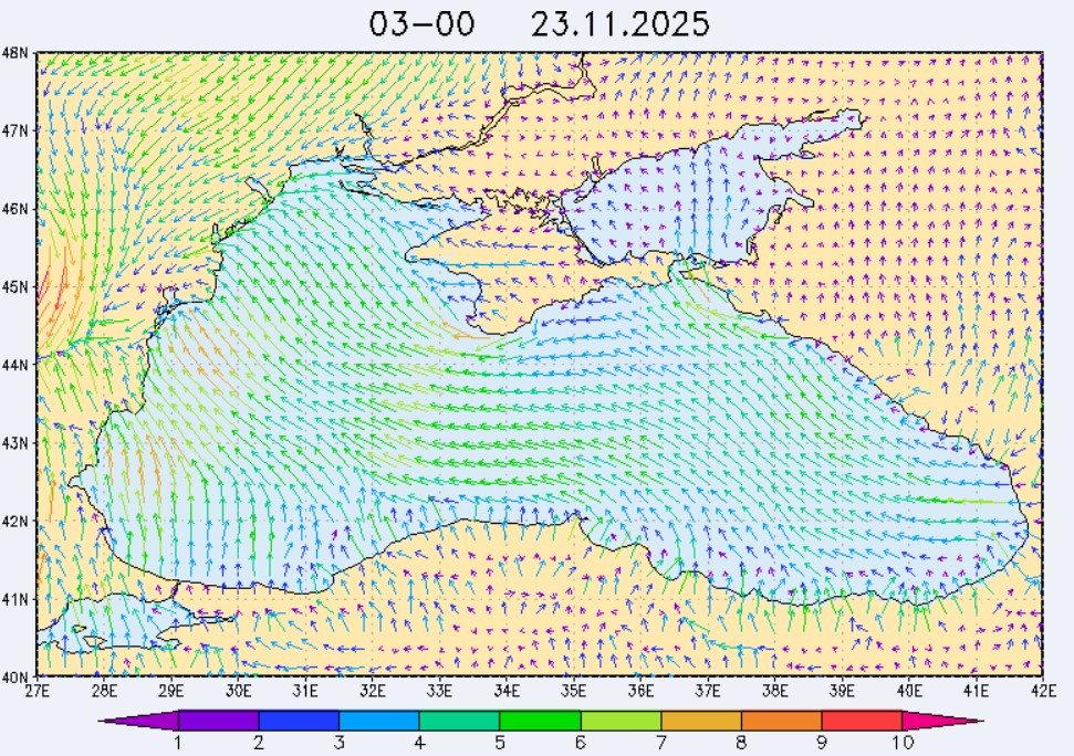 21-23 ноября в северо-восточной части Черного моря будет преобладать юго-восточный ветер скоростью 4-9 м/с, 24 ноября у берегов Крыма – западный и юго-западный ветры скорость 3-7 м/с, у побережья Краснодарского края - юго-восточный ветер скоростью 5-10 м/с. Средняя суточная температура воздуха в этих районах будет находиться в пределах 14-16 °С. Температура поверхностных морских вод в эти дни в прибрежных акваториях северо-восточной части Черного моря составит 14-16 °С. С 22 по 25 ноября основной промысел хамсы будет продолжаться на неустойчивых мигрирующих скоплениях в северо-восточной части Черного моря на участках шельфа от Алушты до Анапы.Ветер