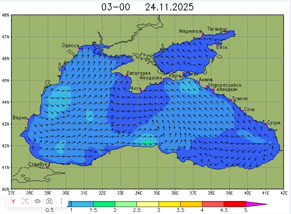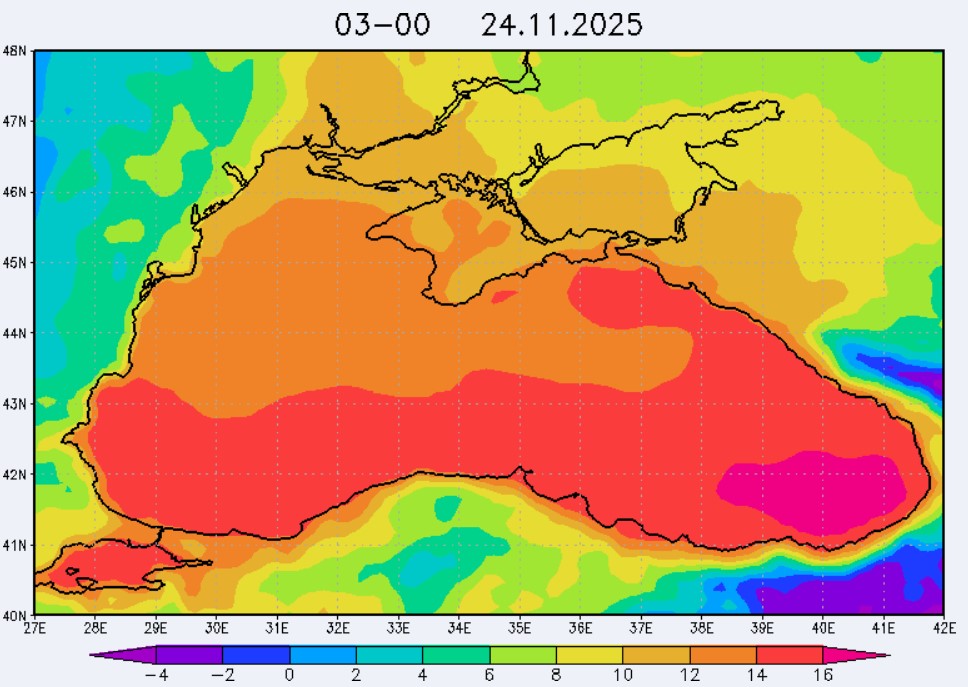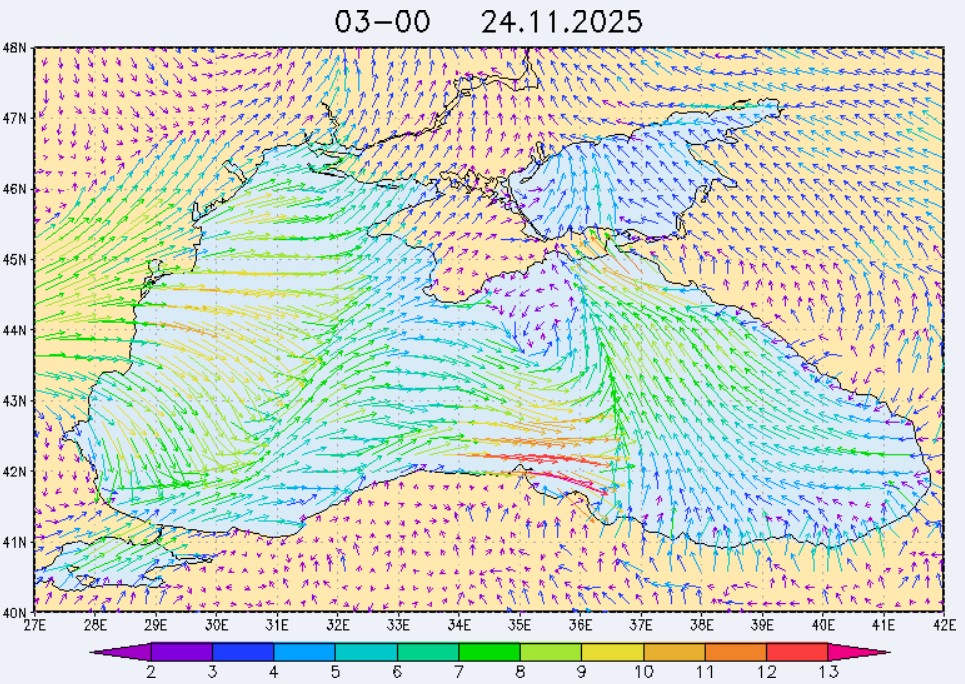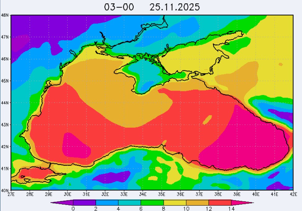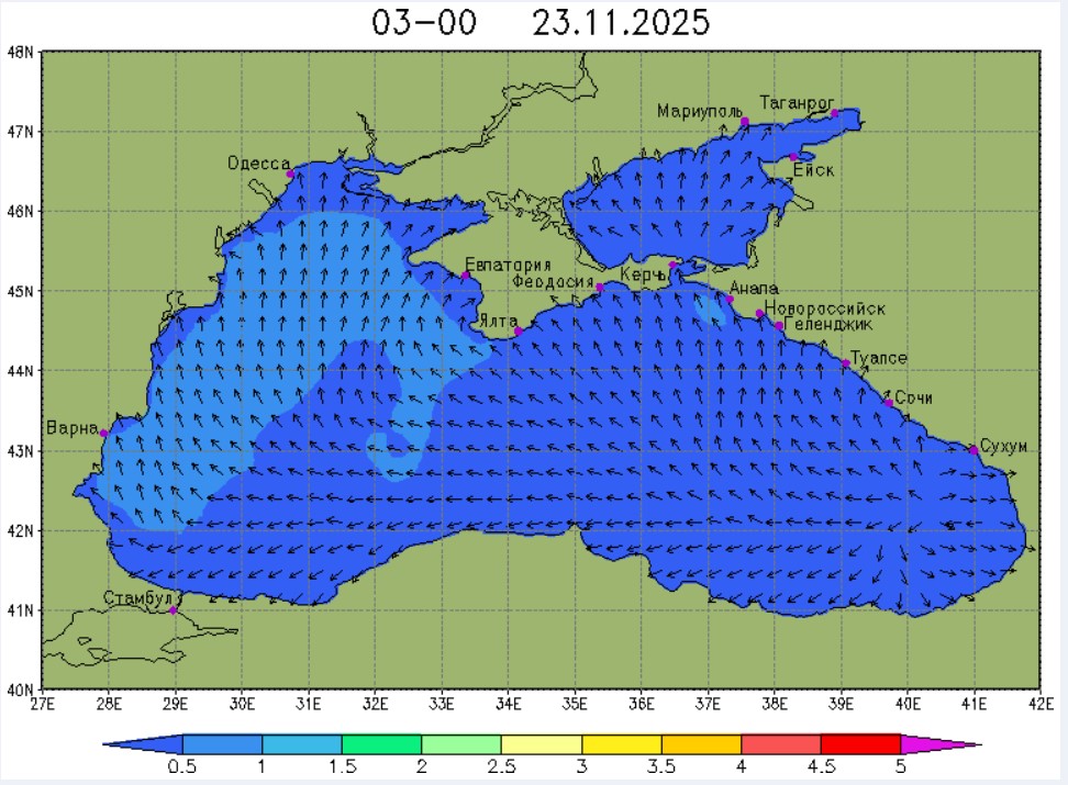 21-23 ноября в северо-восточной части Черного моря будет преобладать юго-восточный ветер скоростью 4-9 м/с, 24 ноября у берегов Крыма – западный и юго-западный ветры скорость 3-7 м/с, у побережья Краснодарского края - юго-восточный ветер скоростью 5-10 м/с. Средняя суточная температура воздуха в этих районах будет находиться в пределах 14-16 °С. Температура поверхностных морских вод в эти дни в прибрежных акваториях северо-восточной части Черного моря составит 14-16 °С. С 22 по 25 ноября основной промысел хамсы будет продолжаться на неустойчивых мигрирующих скоплениях в северо-восточной части Черного моря на участках шельфа от Алушты до Анапы.Ветер