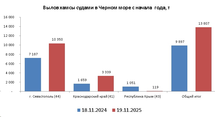 В период с 17 по 19 ноября 2025 года в условиях штормовой погоды российские рыболовные суда вели неустойчивый промысел хамсы.