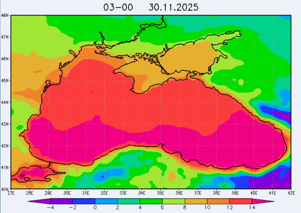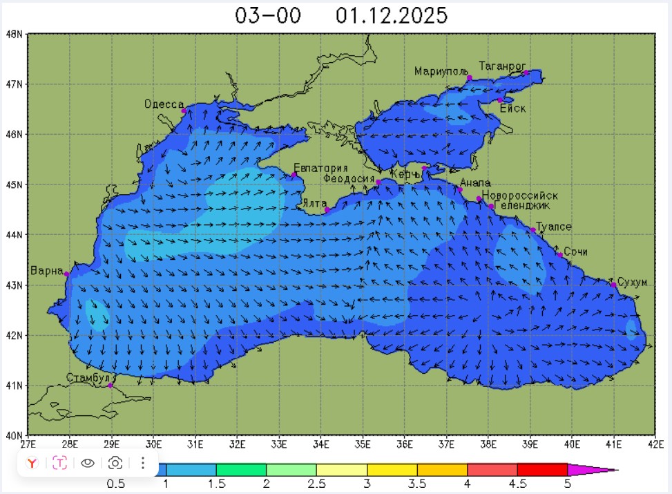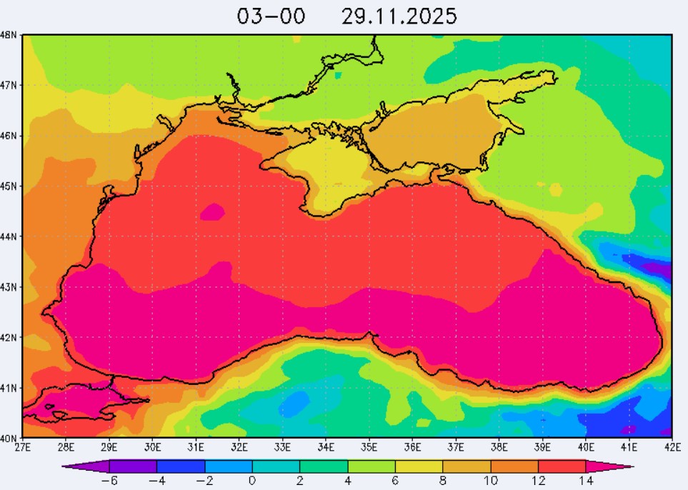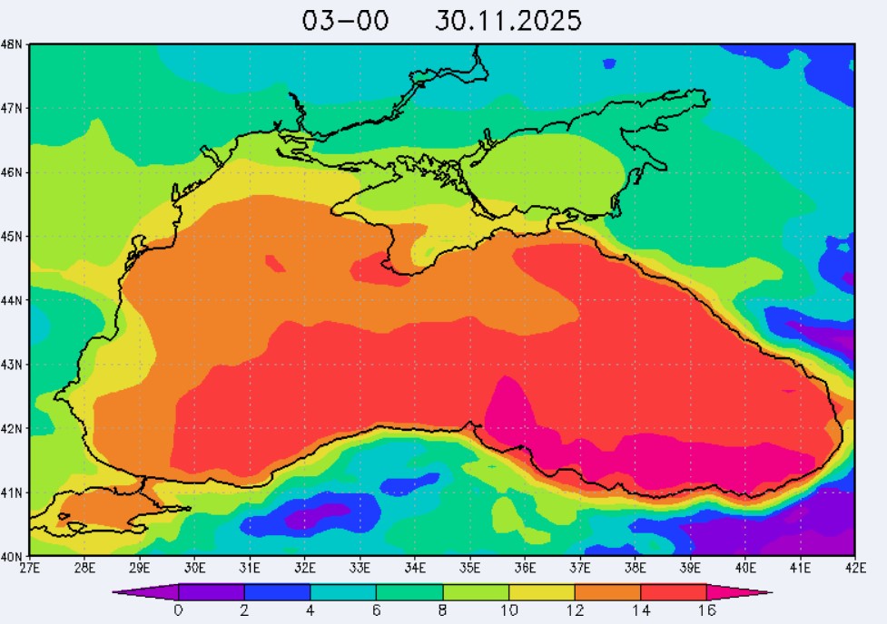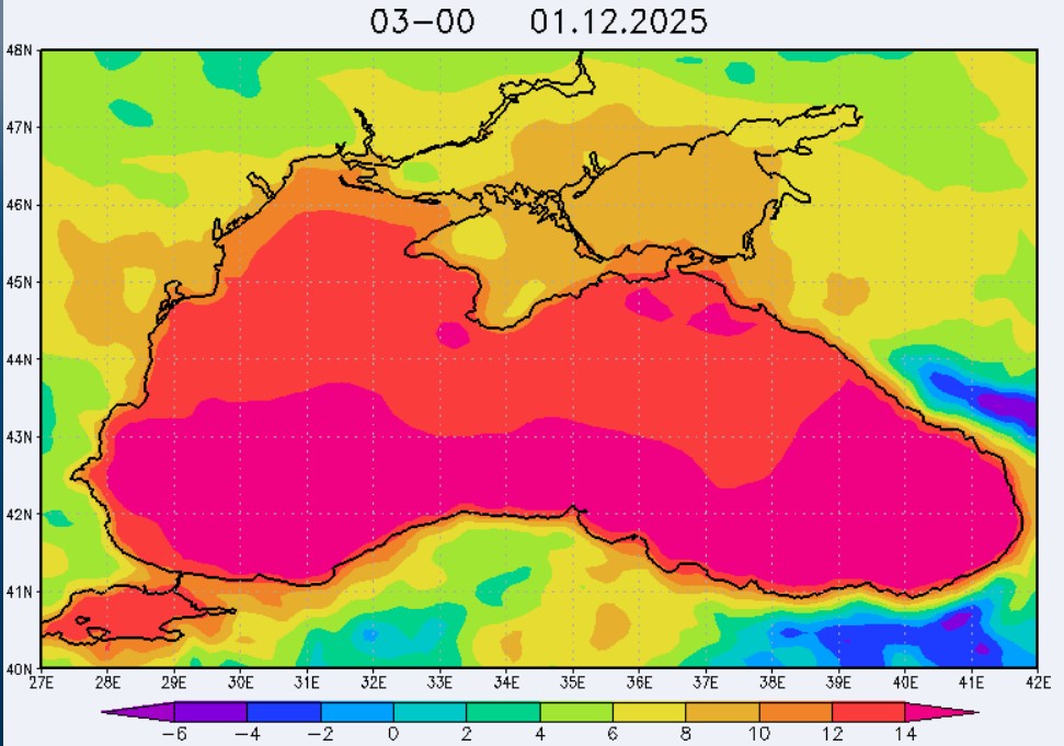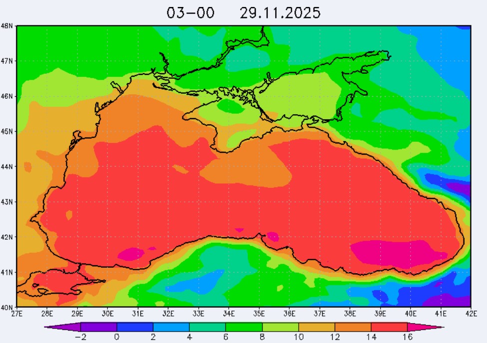 28-29 ноября в северо-восточной части Черного моря будут преобладать восточный и северо-восточный ветры скорость 3-6 м/с (в районе м. Сарыч – до 9 м/с), 30 ноября – 1 декабря - юго-восточный ветер скоростью 3-8 м/с. Средняя суточная температура воздуха в этом районе с 28 ноября по 1 декабря будет находиться в пределах 13-15 °С. Температура поверхностных морских вод в эти дни в прибрежных акваториях северо-восточной части Черного моря составит 14-16 °С. С 29 ноября по 2 декабря основной промысел хамсы будет продолжаться на неустойчивых мигрирующих скоплениях в северо-восточной части Черного моря на участках шельфа в районе м. Меганом и от м. Такиль до Анапы.Ветер