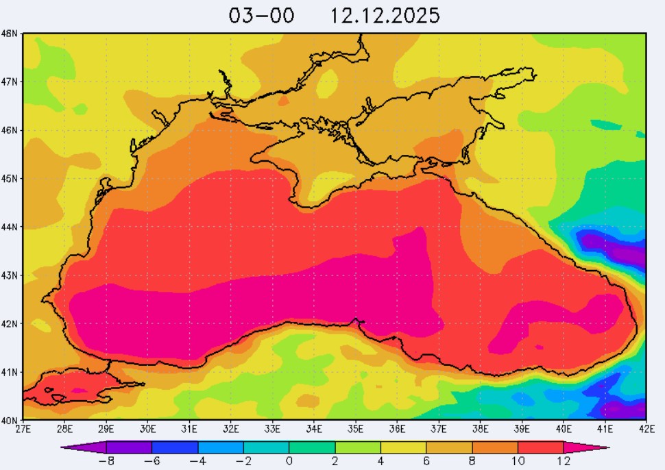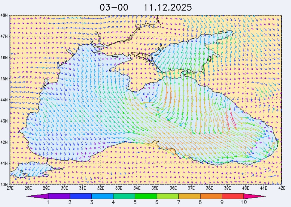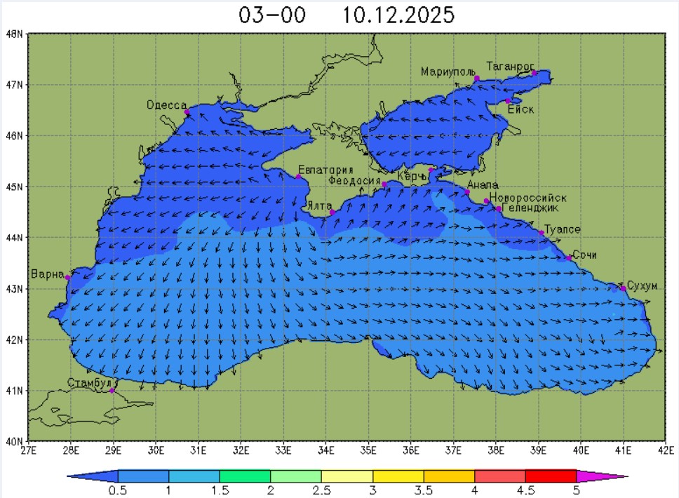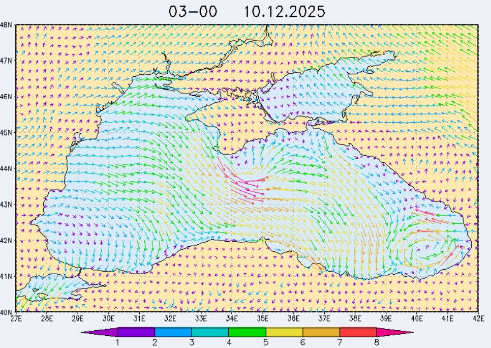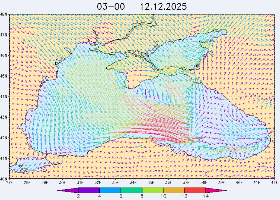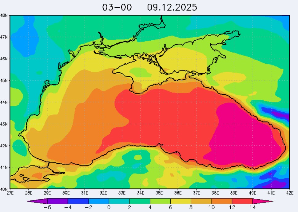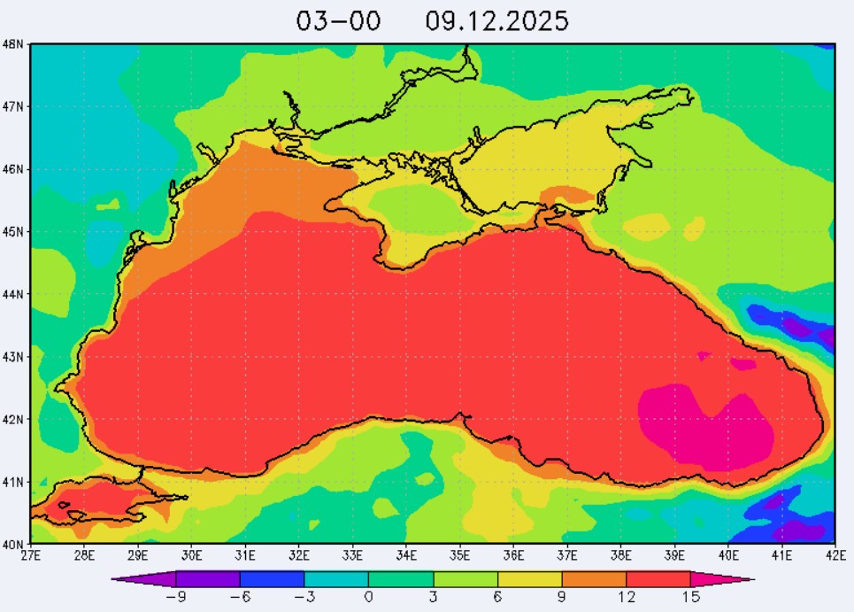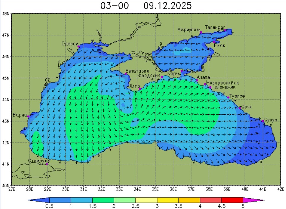 9 и 11 декабря в северо-восточной части Черного моря будут преобладать северный и северо-восточный ветры скоростью 3-8 м/с, 10 декабря – северный и северо-западный ветры скорость 4-9 м/с. Средняя суточная температура воздуха в этом районе моря с 9 по 11 декабря будет находиться в пределах 9-13 °С. Температура поверхностных морских вод в эти дни в прибрежных акваториях северо-восточной части Черного моря составит 13-14 °С. С 10 по 12 декабря наиболее результативный промысел хамсы в северо-восточной части Черного моря может вестись на неустойчивых мигрирующих скоплениях, на участках шельфа от Алушты до м. Меганом, в районе Анапы и в районе Туапсе.Ветер