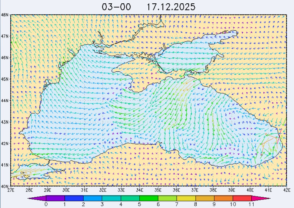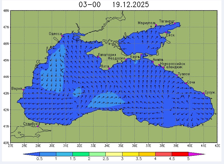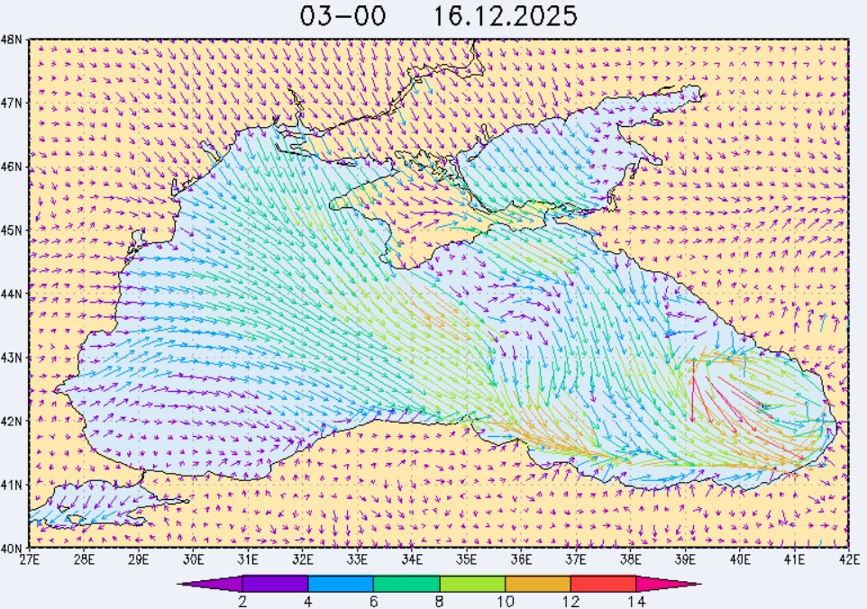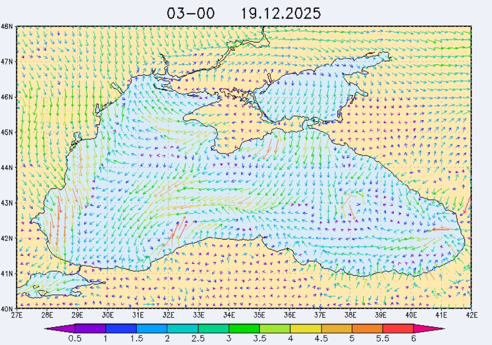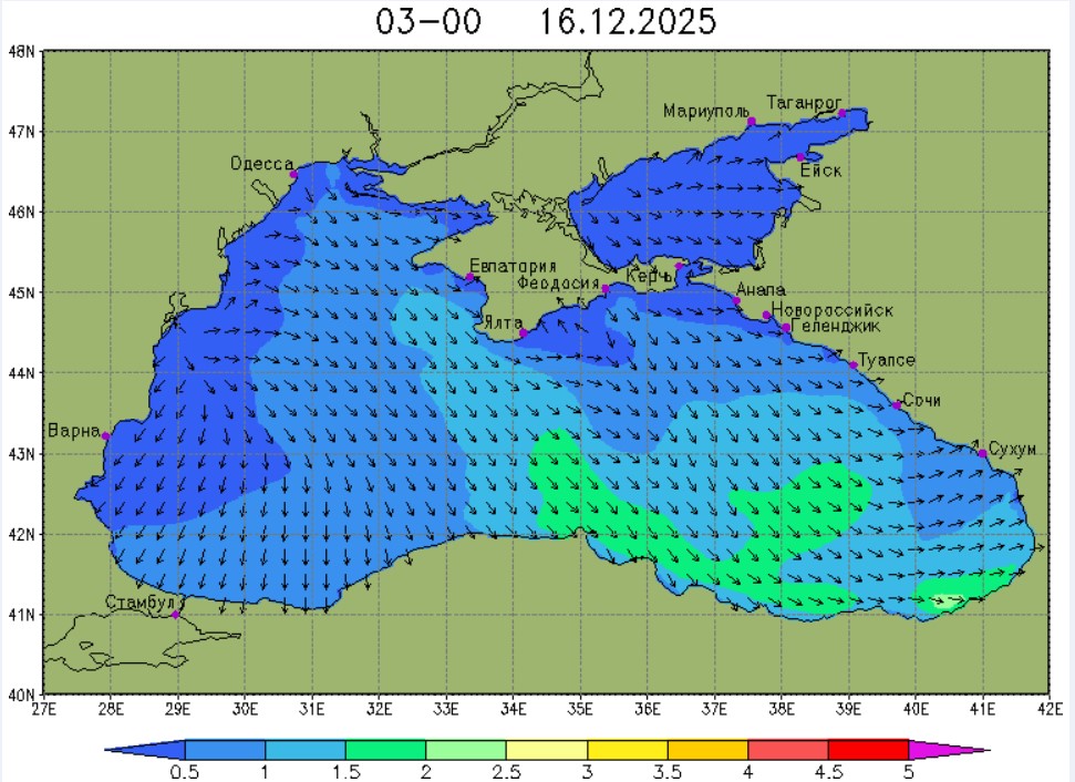 16 декабря в северо-восточной части Черного моря будут преобладать западный и северо-западный ветры скоростью 5-10 м/с, 17 декабря – северо-восточный ветер скоростью 3-8 м/с, 18 декабря – слабые ветры переменных направлений. Средняя суточная температура воздуха в этом районе моря с 16 по 18 декабря будет находиться в пределах 4-10 °С. Температура поверхностных морских вод в эти дни в прибрежных акваториях северо-восточной части Черного моря составит 12-14 °С. С 17 по 19 декабря наиболее результативный промысел хамсы в северо-восточной части Черного моря может проводиться на неустойчивых скоплениях, на участках шельфа в районах у м. Херсонес, у м. Чауда, у Анапы и у пос. Архипо-Осиповка.Ветер