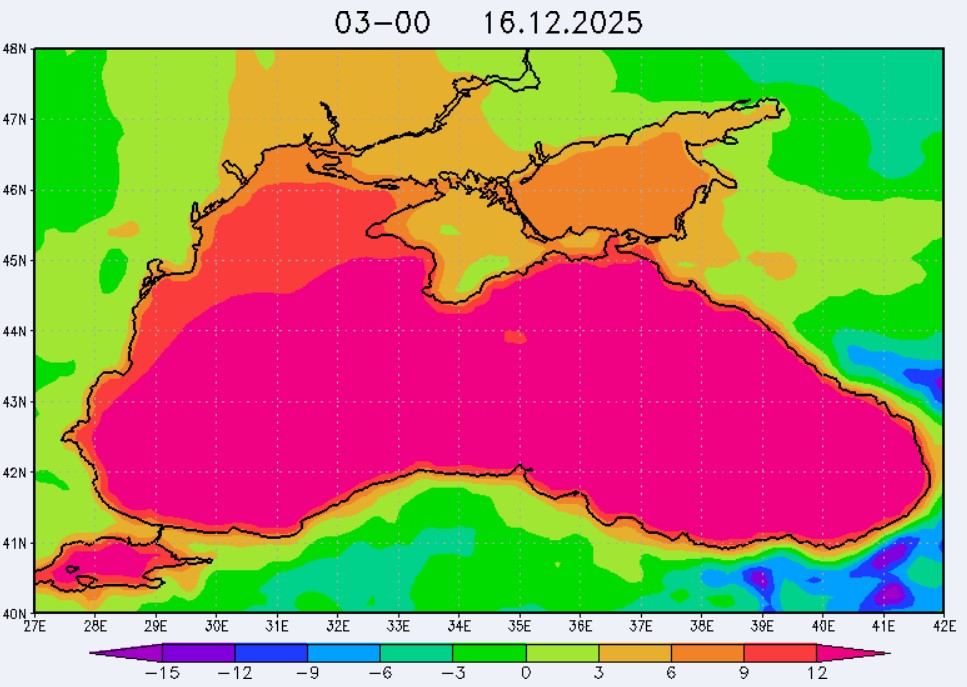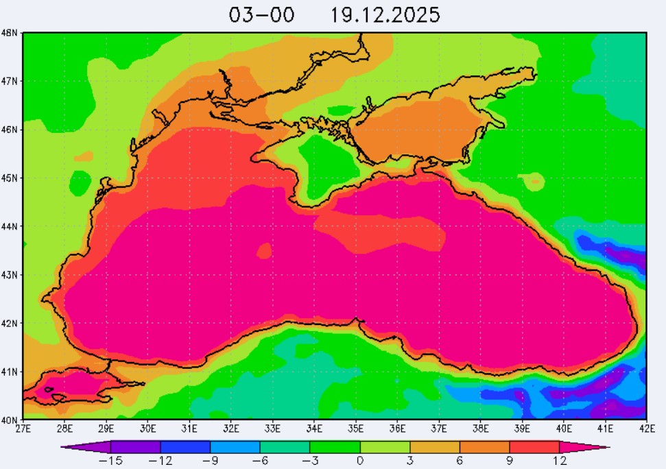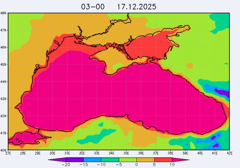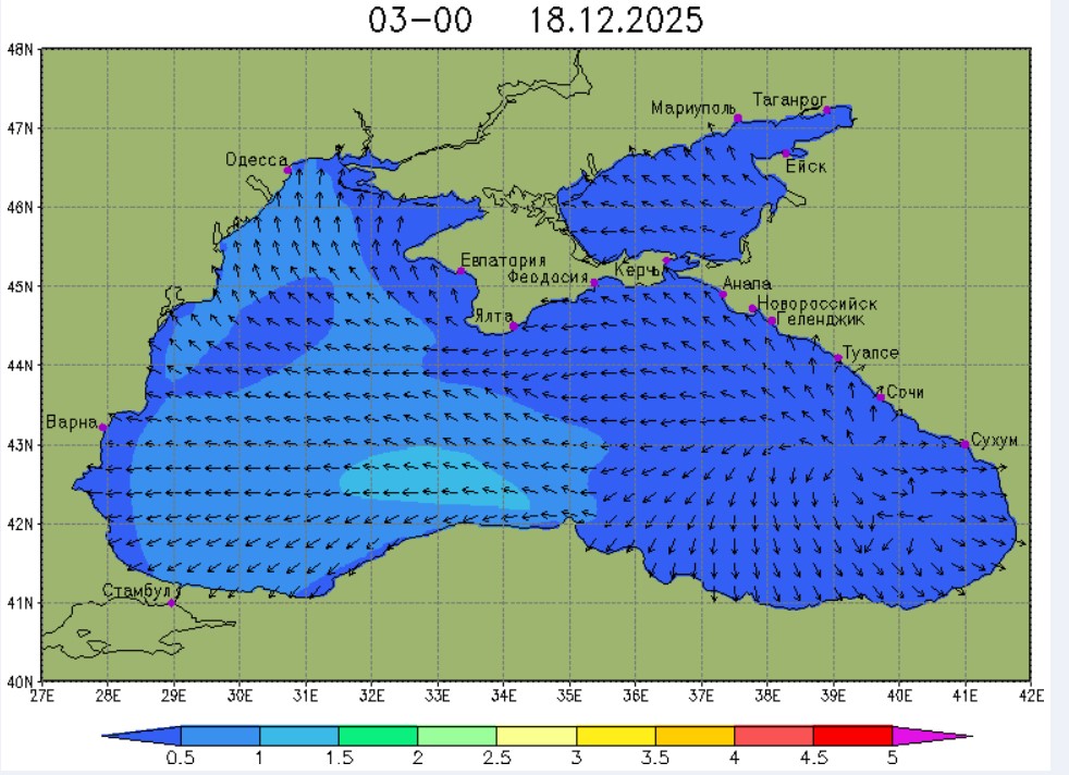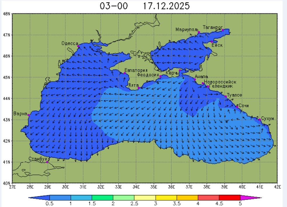 16 декабря в северо-восточной части Черного моря будут преобладать западный и северо-западный ветры скоростью 5-10 м/с, 17 декабря – северо-восточный ветер скоростью 3-8 м/с, 18 декабря – слабые ветры переменных направлений. Средняя суточная температура воздуха в этом районе моря с 16 по 18 декабря будет находиться в пределах 4-10 °С. Температура поверхностных морских вод в эти дни в прибрежных акваториях северо-восточной части Черного моря составит 12-14 °С. С 17 по 19 декабря наиболее результативный промысел хамсы в северо-восточной части Черного моря может проводиться на неустойчивых скоплениях, на участках шельфа в районах у м. Херсонес, у м. Чауда, у Анапы и у пос. Архипо-Осиповка.Ветер