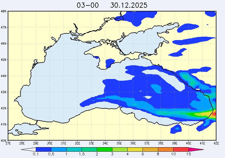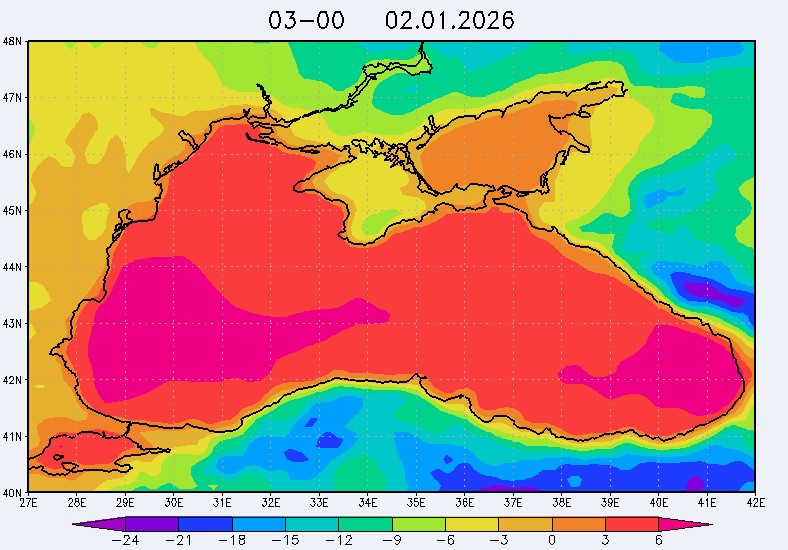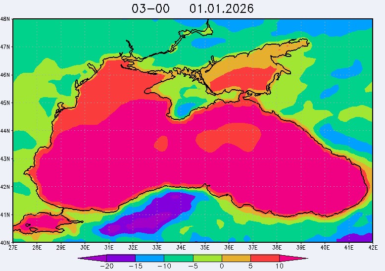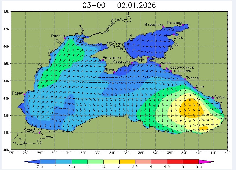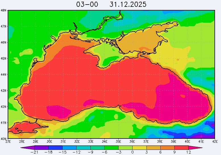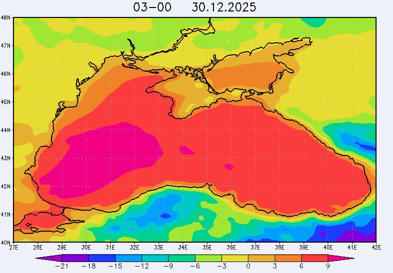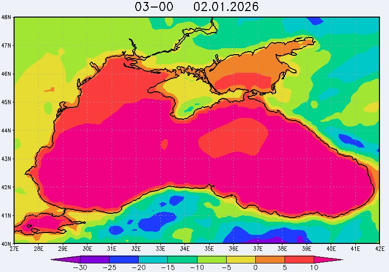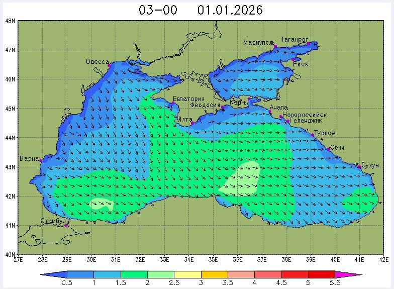 30 декабря в северо-восточной части Черного моря будут преобладать западный и юго-западный ветры 7-12 м/с, 31 декабря и 1 января – северо-западный ветер скорость 8-13 м/с и 29 декабря – западный и северо-западный ветры скорость 5-10 м/с. Средняя суточная температура воздуха в этом районе моря будет уменьшаться от 4-7 °С 30 декабря до 1-3 °С 1 января. Температура поверхностных морских вод в эти дни в прибрежных акваториях северо-восточной части Черного моря составит 10-11 °С. С 31 декабря по 2 января наиболее результативный промысел хамсы на неустойчивых скоплениях в северо-восточной части Черного моря может проводиться, на участках шельфа у м. Сарыч, у Анапы и у Туапсе.Ветер