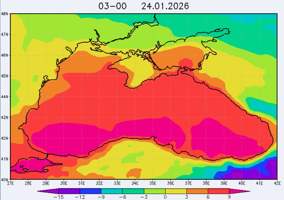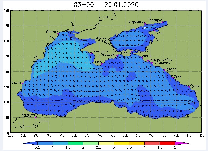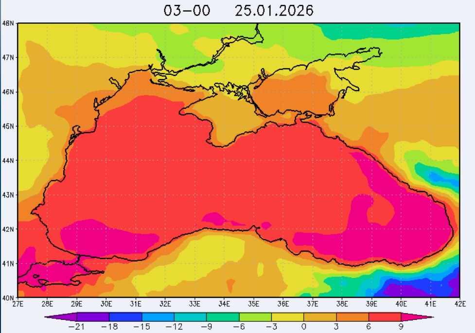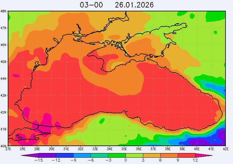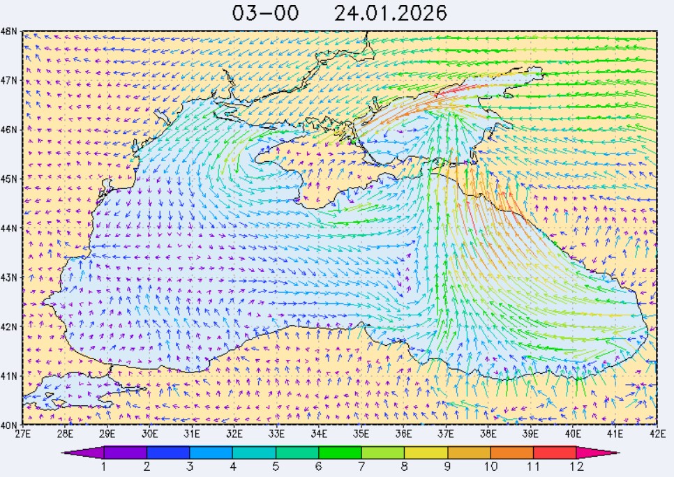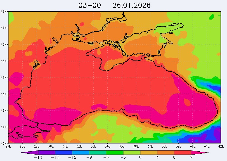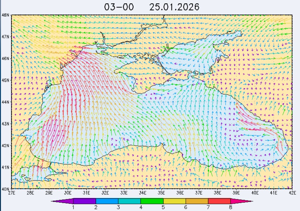 23 января в северо-восточной части Черного моря будут преобладать южный и юго-восточный ветры скоростью 3-8 м/с, 24 января – южный и юго-западный ветры скоростью 4-9 м/с, 25 января – восточный и северо-восточный ветры скоростью 3-7 м/с, 26 января – восточный и юго-восточный ветры скоростью 3-8 м/с (в районе м. Сарыч до 11 м/с). Средняя суточная температура воздуха в этом районе моря 23-25 января будет находиться в пределах 6-8 °С, 26 января – 8-10 °С. Температура поверхностных морских вод в эти дни в прибрежных акваториях северо-восточной части Черного моря составит 7-9 °С. С 24 по 27 января наиболее результативный промысел хамсы в северо-восточной части Черного моря может проводиться на участках шельфа от Ялты до Алушты, в районах Феодосии, Анапы и Геленджика.Ветер