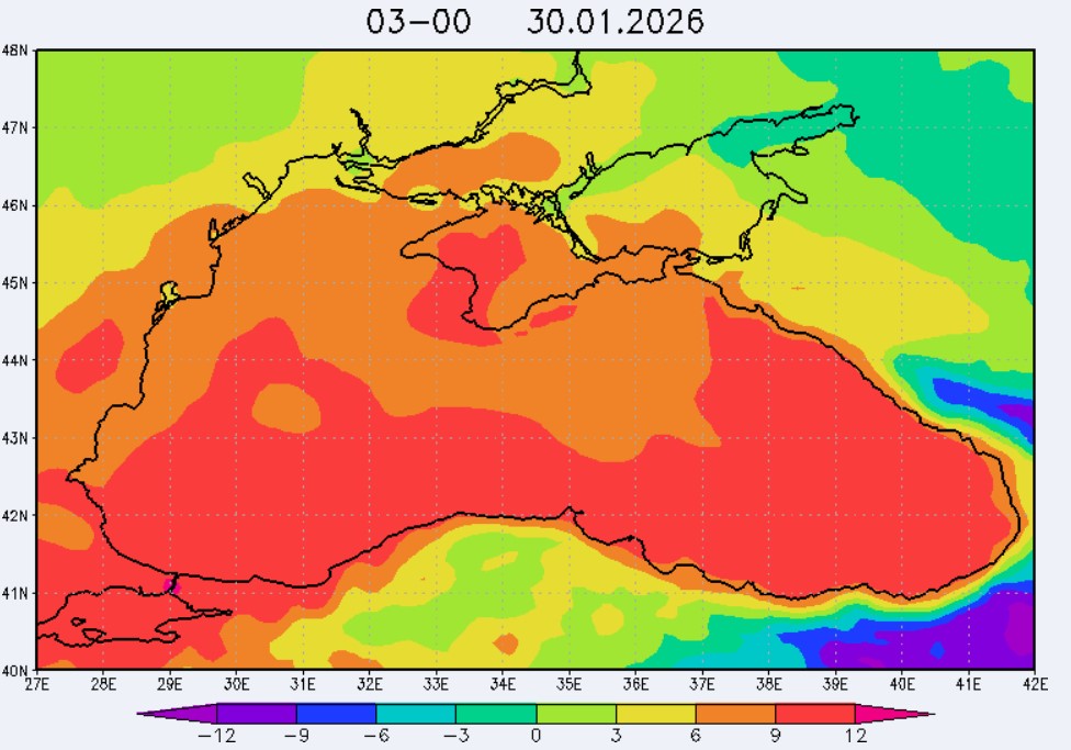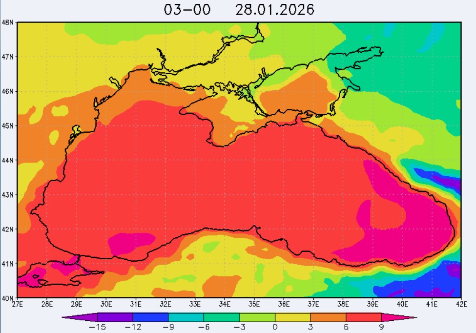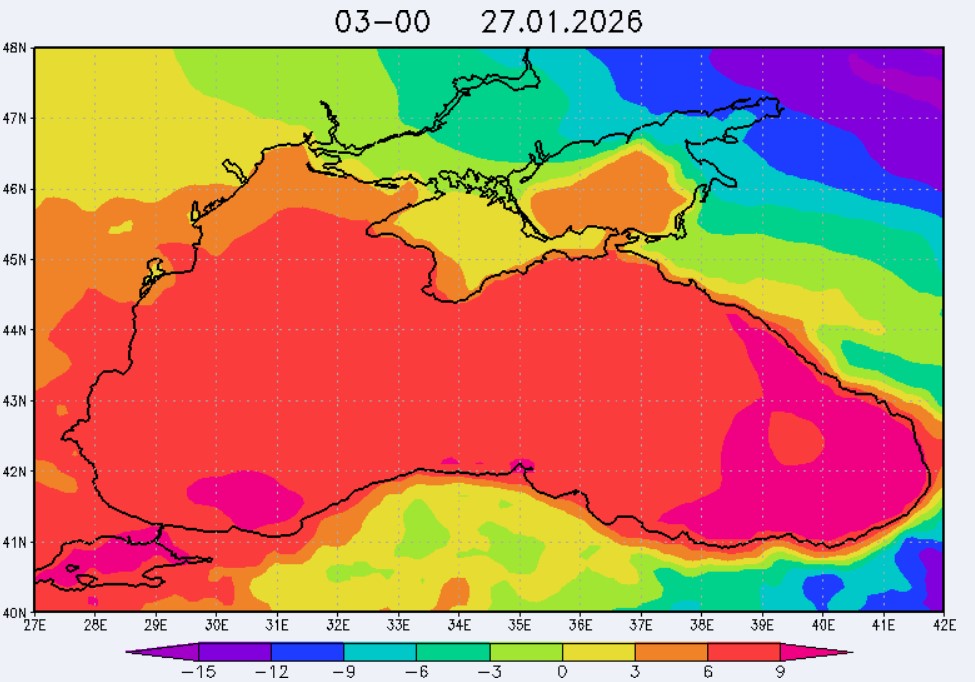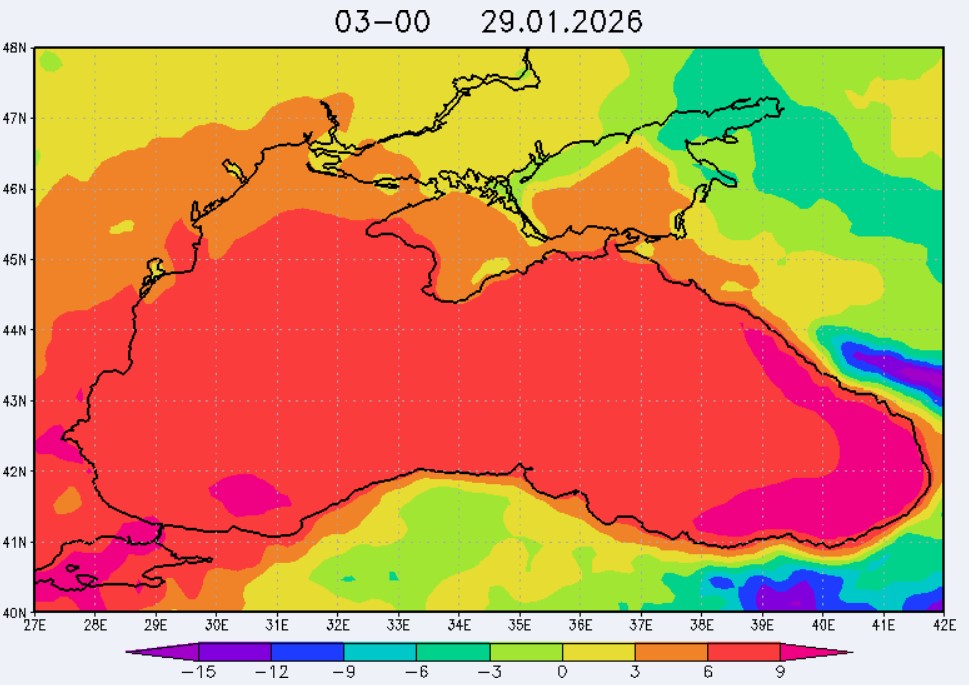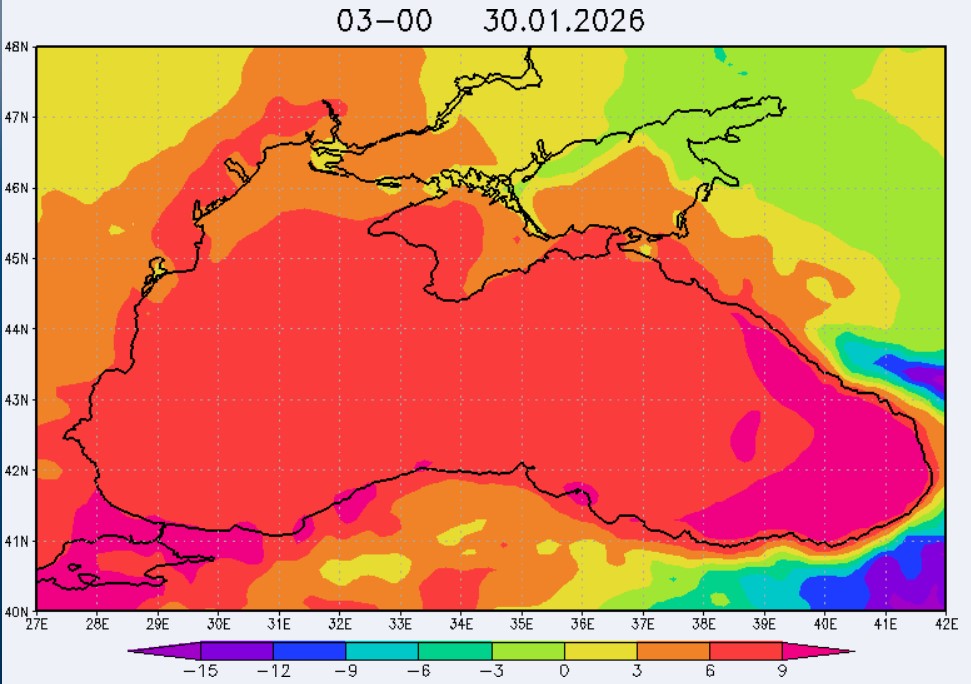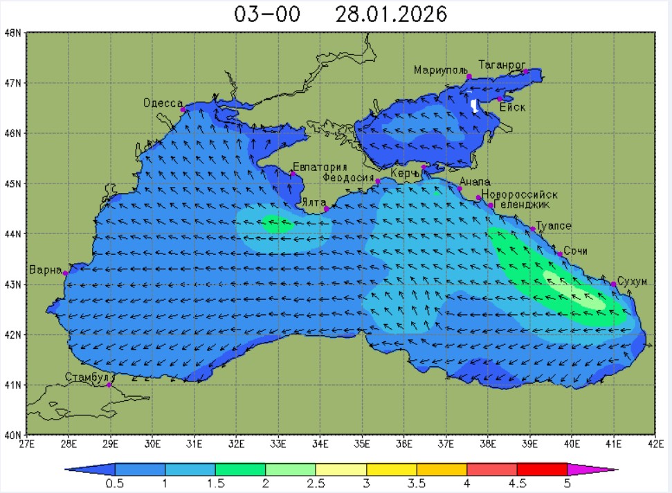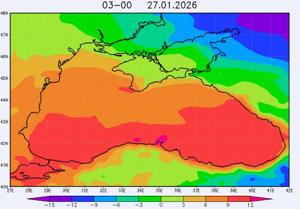27 января в северо-восточной части Черного моря будут преобладать восточный и северо-восточный ветры скоростью 7-12 м/с, 28 января - восточный и юго-восточный ветры скоростью 7-12 м/с. 29 января у берегов Крыма ожидаются южный и юго-западный ветры скоростью 3-8 м/с, у побережья Краснодарского края - южный и юго-восточный ветры скоростью 3-8 м/с. Средняя суточная температура воздуха в этом районе моря 27-29 января будет находиться в пределах 7-10 °С. Температура поверхностных морских вод в эти дни в прибрежных акваториях северо-восточной части Черного моря составит 7-9 °С. С 28 по 30 января наиболее результативный промысел хамсы в северо-восточной части Черного моря может проводиться на участках шельфа от Ялты до Новороссийска и в районе Сочи.Ветер