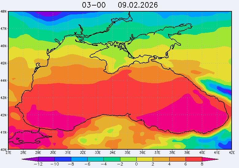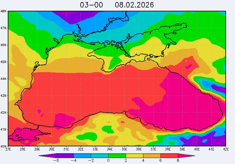 6-7 февраля в северо-восточной части Черного моря (до Адлера) будут преобладать восточный и юго-восточный ветры скоростью 8-13 м/с, 8 февраля – юго-западный ветер скоростью 7-12 м/с, 9 февраля – северо-западный ветер скоростью 3-8 м/с. Средняя суточная температура воздуха в этом районе с 6 по 9 февраля будет находиться в пределах 3-10 °С. Температура поверхностных морских вод в эти дни в прибрежных акваториях северо-восточной части Черного моря составит 8-10 °С. С 7 по 10 февраля наиболее результативный промысел хамсы в северо-восточной части Черного моря может проводиться на участках шельфа в районах Алушты, Анапы и Туапсе.Ветер
