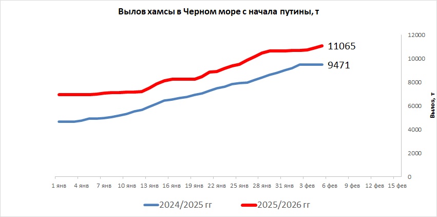 В период со 2 по 4 февраля 2026 года, в сложных погодных условиях, промысловые суда РФ вели неустойчивый промысел хамсы у черноморского побережья Краснодарского края.