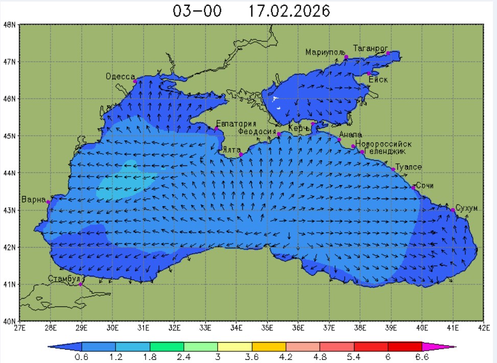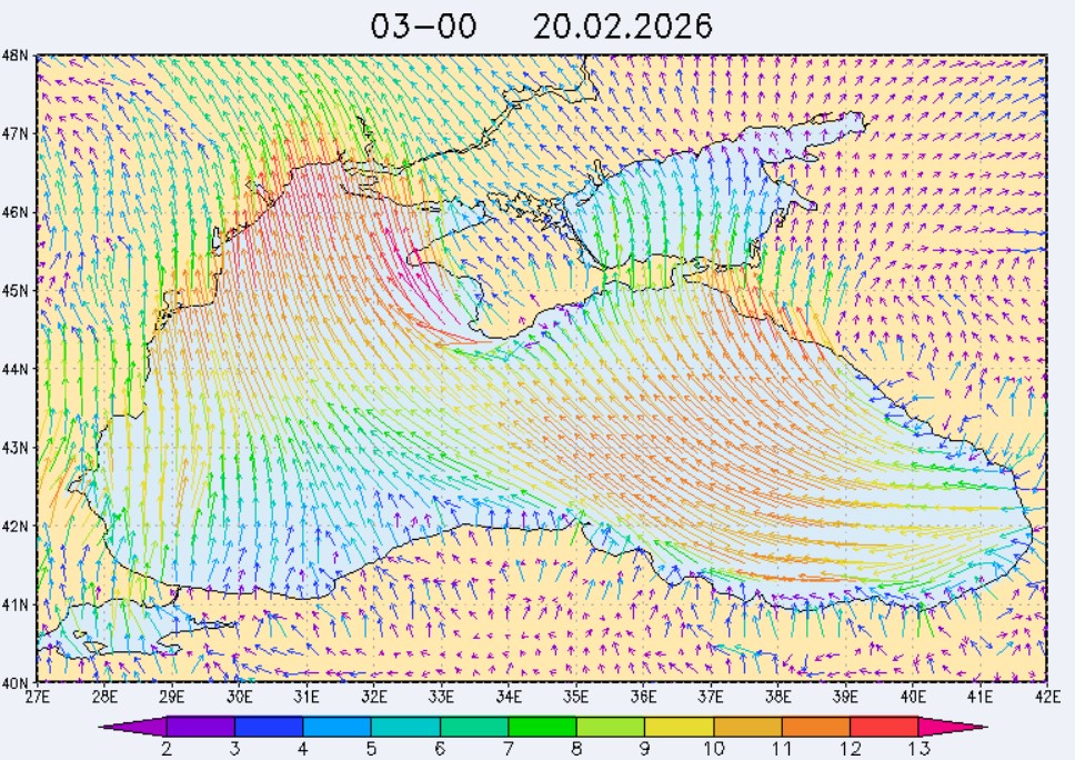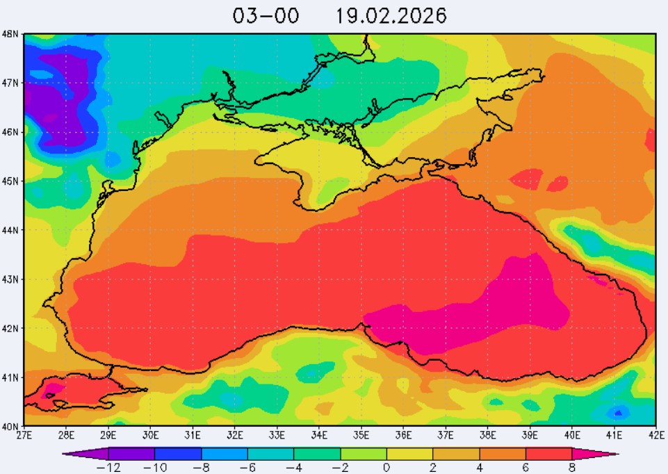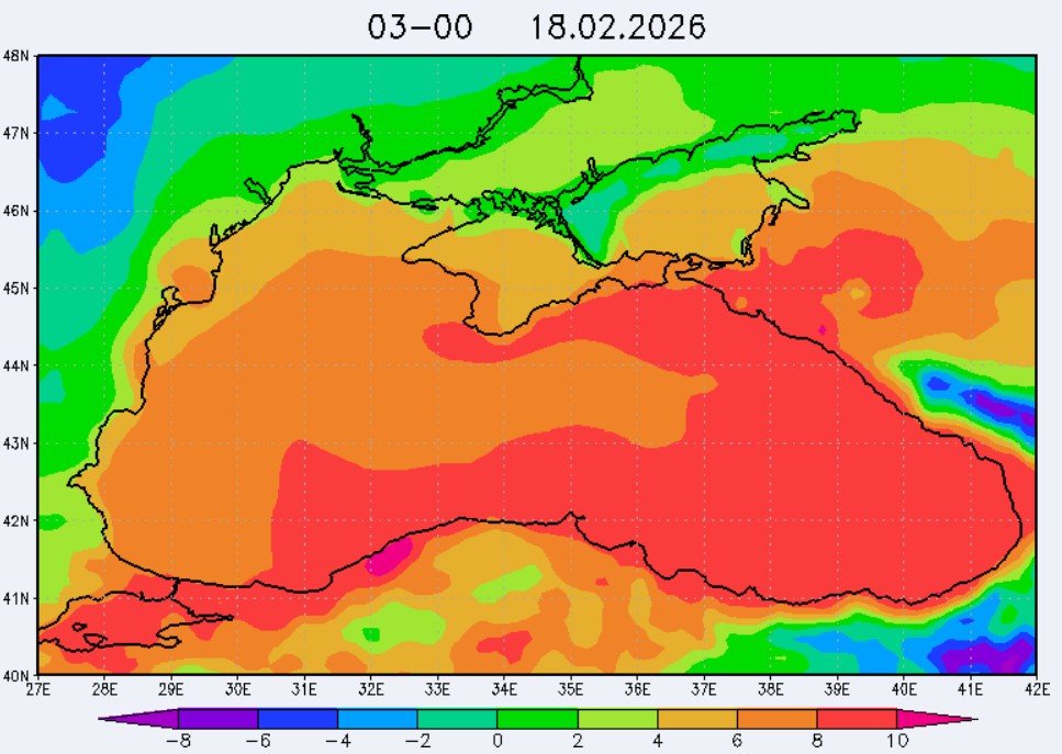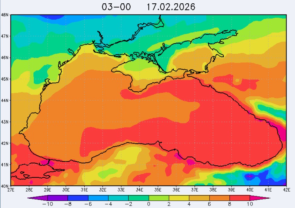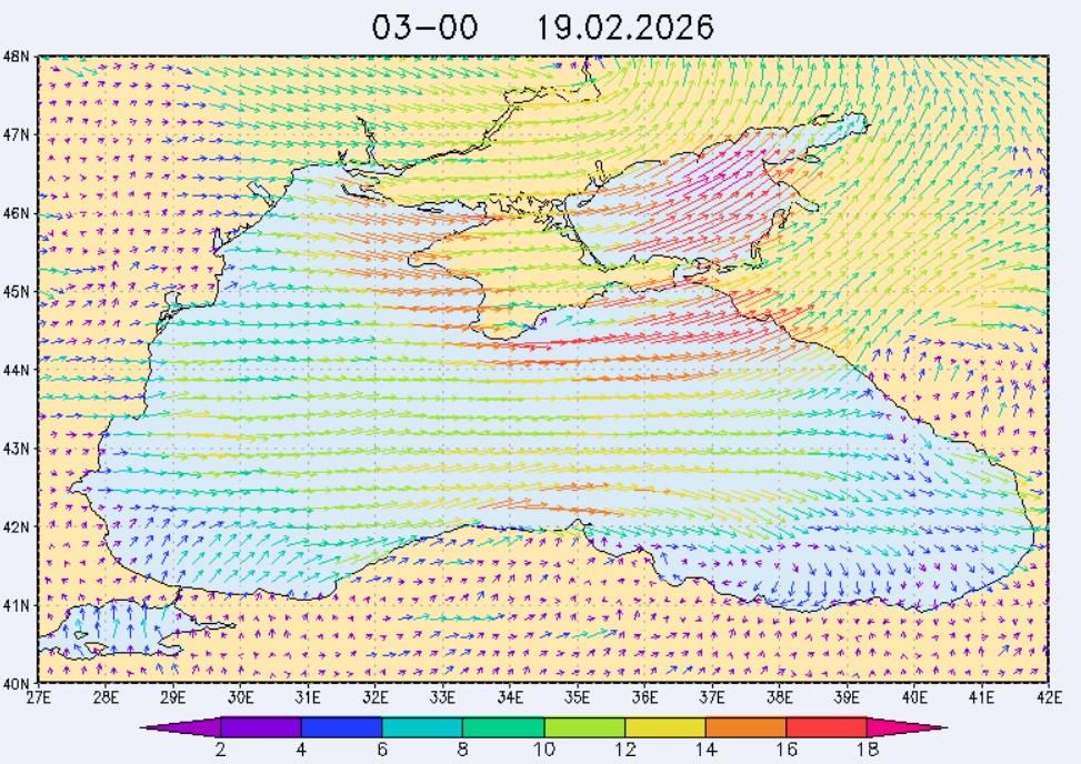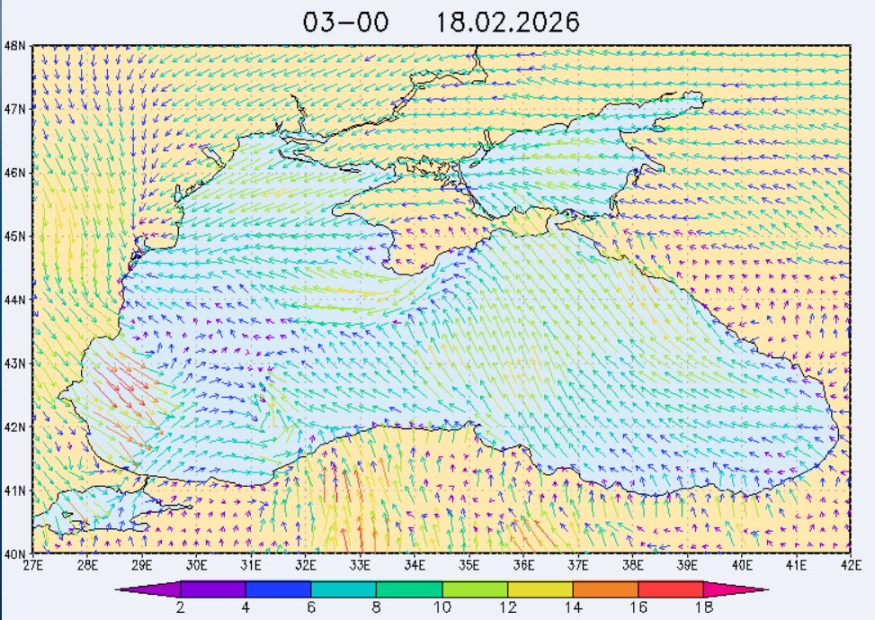 17 февраля в северо-восточной части Черного моря (до Адлера) будет преобладать северо-восточный ветер скоростью 3-8 м/с, 18 февраля – восточный и юго-восточный ветры скоростью 8-13 м/с, 19 февраля – западный и юго-западный ветры скорость 13-18 м/с. Средняя суточная температура воздуха в этом районе 17 февраля будет находиться в пределах 6-10 °С, 18 февраля - 9-12 °С, 19 февраля – 6-8 °С. Температура поверхностных морских вод в эти дни в прибрежных акваториях северо-восточной части Черного моря составит 8-10 °С. С 18 по 20 февраля наиболее результативный промысел хамсы в северо-восточной части Черного моря может проводиться на участках шельфа от Ялты до Алушты, в районах м. Такиль, Геленджика и Туапсе.Ветер