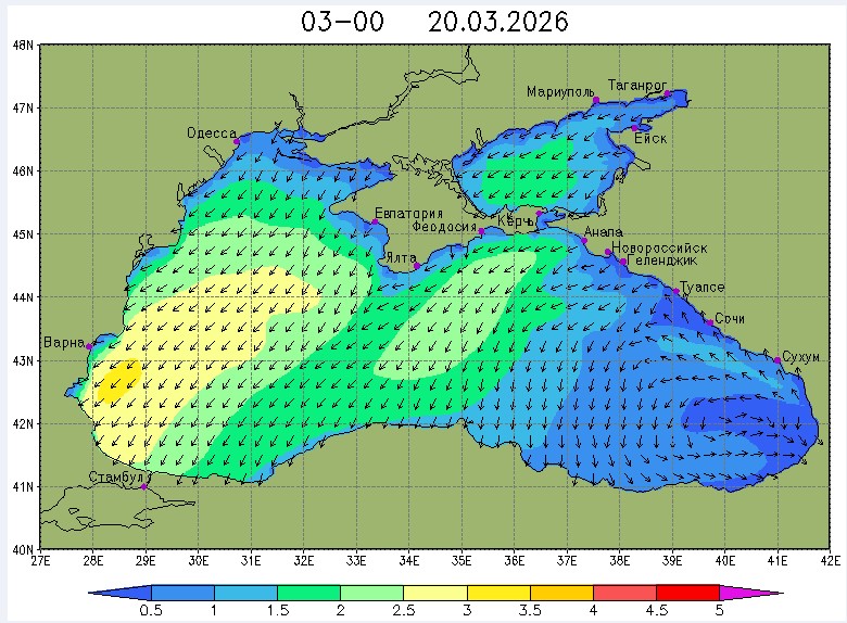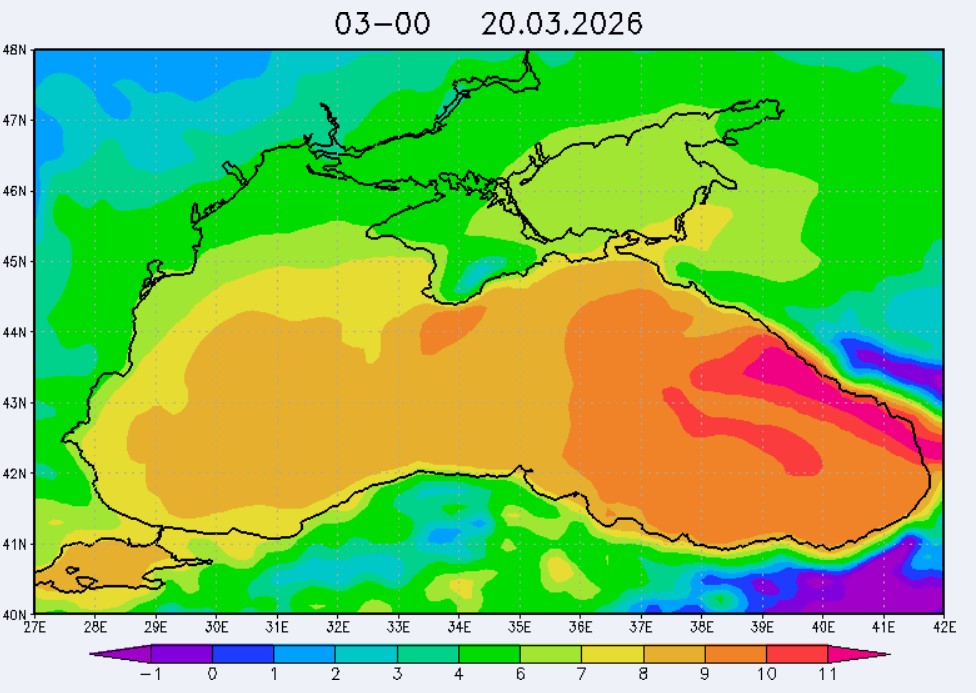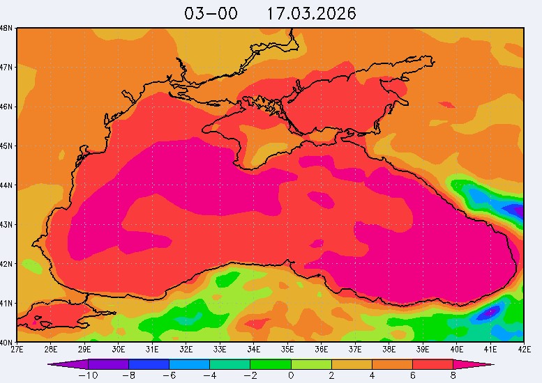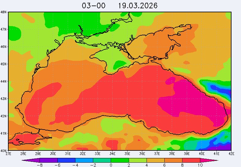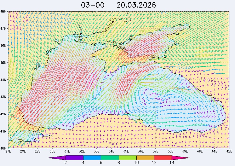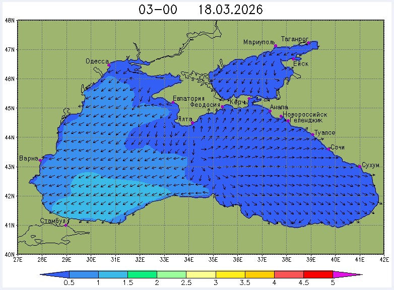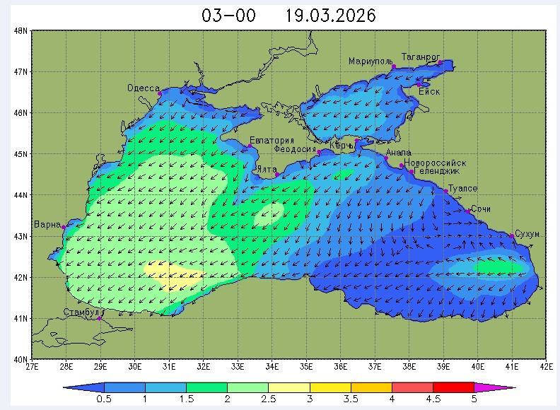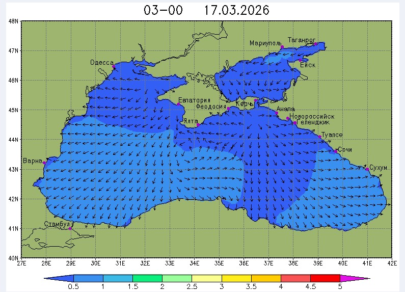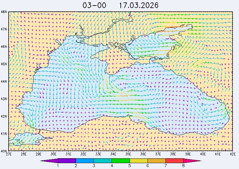 17 марта в северо-восточной части Черного моря (до Адлера) будет преобладать южный и юго-западный ветры скоростью 3-6 м/с, 18-19 марта – северный и северо-восточный ветры скоростью: 3-8 м/с 18 марта и 7-12 м/с 19 марта. Средняя суточная температура воздуха в этом районе моря с 17 по 19 марта будет находиться в пределах 7-9 °С. Температура поверхностных морских вод в эти дни в прибрежных акваториях северо-восточной части Черного моря составит 8-10 °С. С 18 по 20 марта наиболее результативный промысел хамсы в северо-восточной части Черного моря может проводиться на участках шельфа от Ялты до м. Меганом, в районе Новороссийска и в районе Туапсе.Ветер