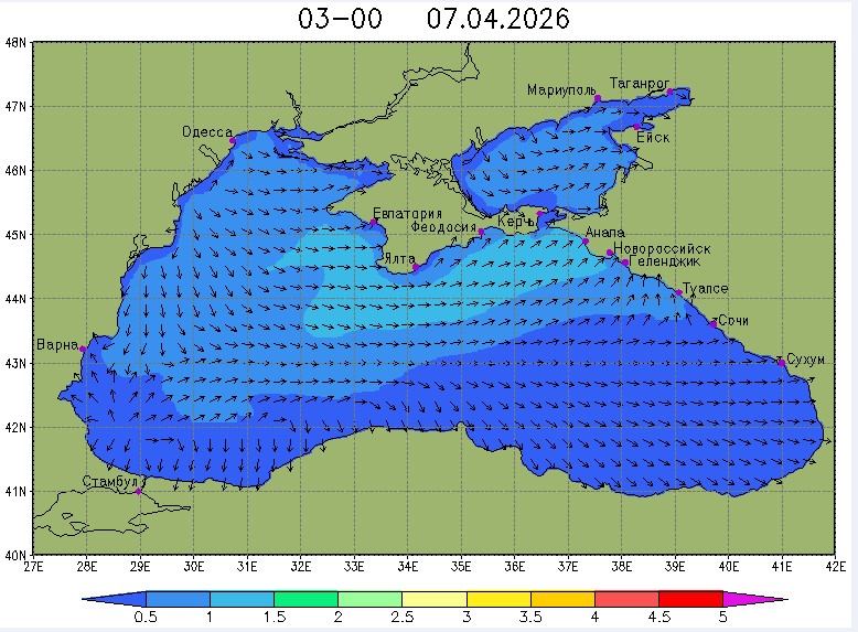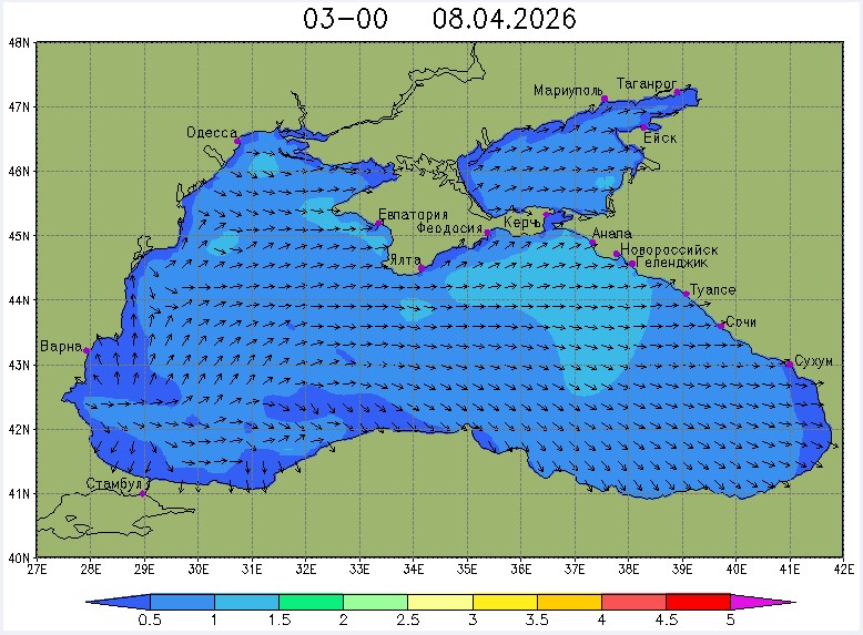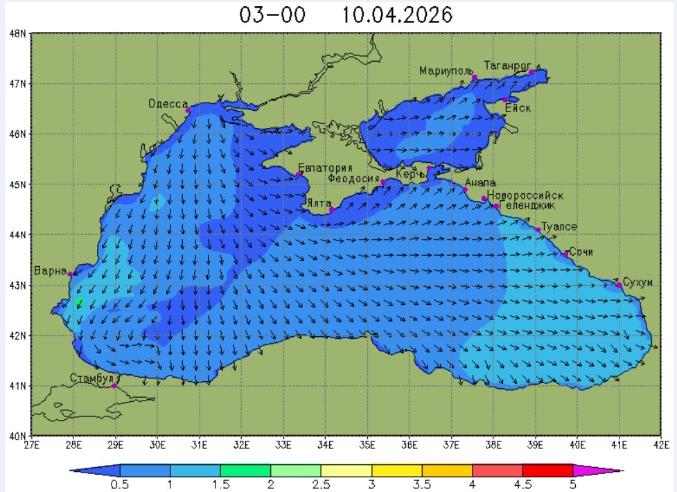 7 апреля в северо-восточной части Черного моря (до Адлера) будет преобладать юго-западный ветер скоростью 7-12 м/с. 8 апреля - западный ветер скоростью 6-11 м/с, 9 апреля – северо-западный ветер скоростью 7-12 м/с. Средняя суточная температура воздуха в этом районе моря с 7 по 9 апреля будет находиться в пределах 9-11 °С. Температура поверхностных морских вод в эти дни в прибрежных акваториях северо-восточной части Черного моря составит 10-12 °С. С 8 по 10 апреля наиболее результативный промысел хамсы в северо-восточной части Черного моря может осуществляться на участках шельфа в районе Ялты и в районе пос. Ольгинка, шпрота – у м. Чауда и у пос. Утриш.Ветер